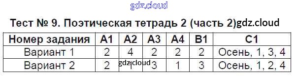 Ответ на задание Тест №9. Поэтическая тетрадь 2 (часть 2) Контрольно-измерительные материалы (КИМ) Литература за 4 (четвертый) класс Кутявина 2017