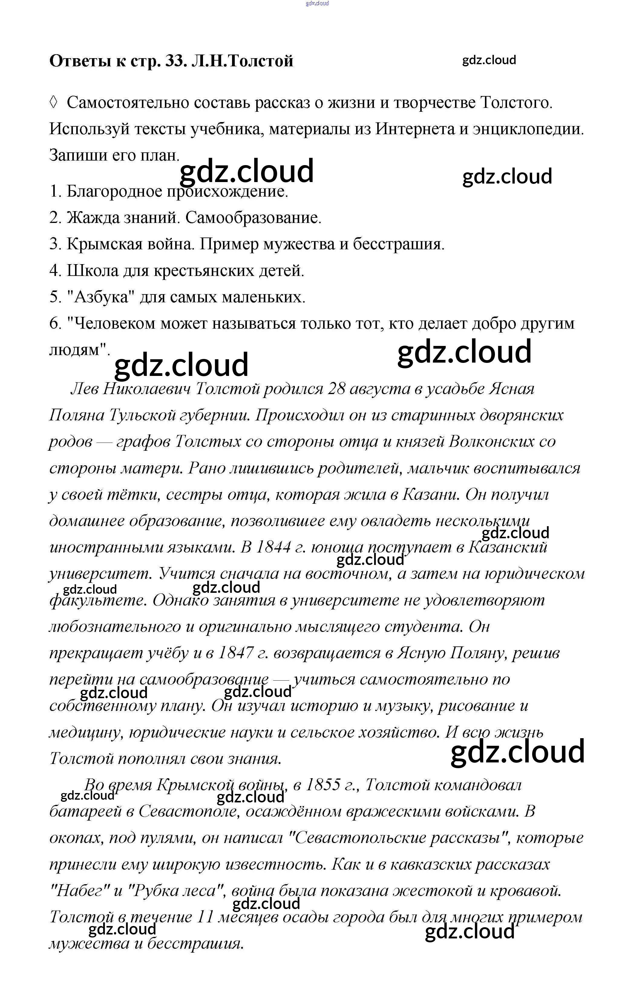 Ответ на задание 33 Рабочая тетрадь Литература за 4 (четвертый) класс Бойкина, Виноградская Школа России 2016
