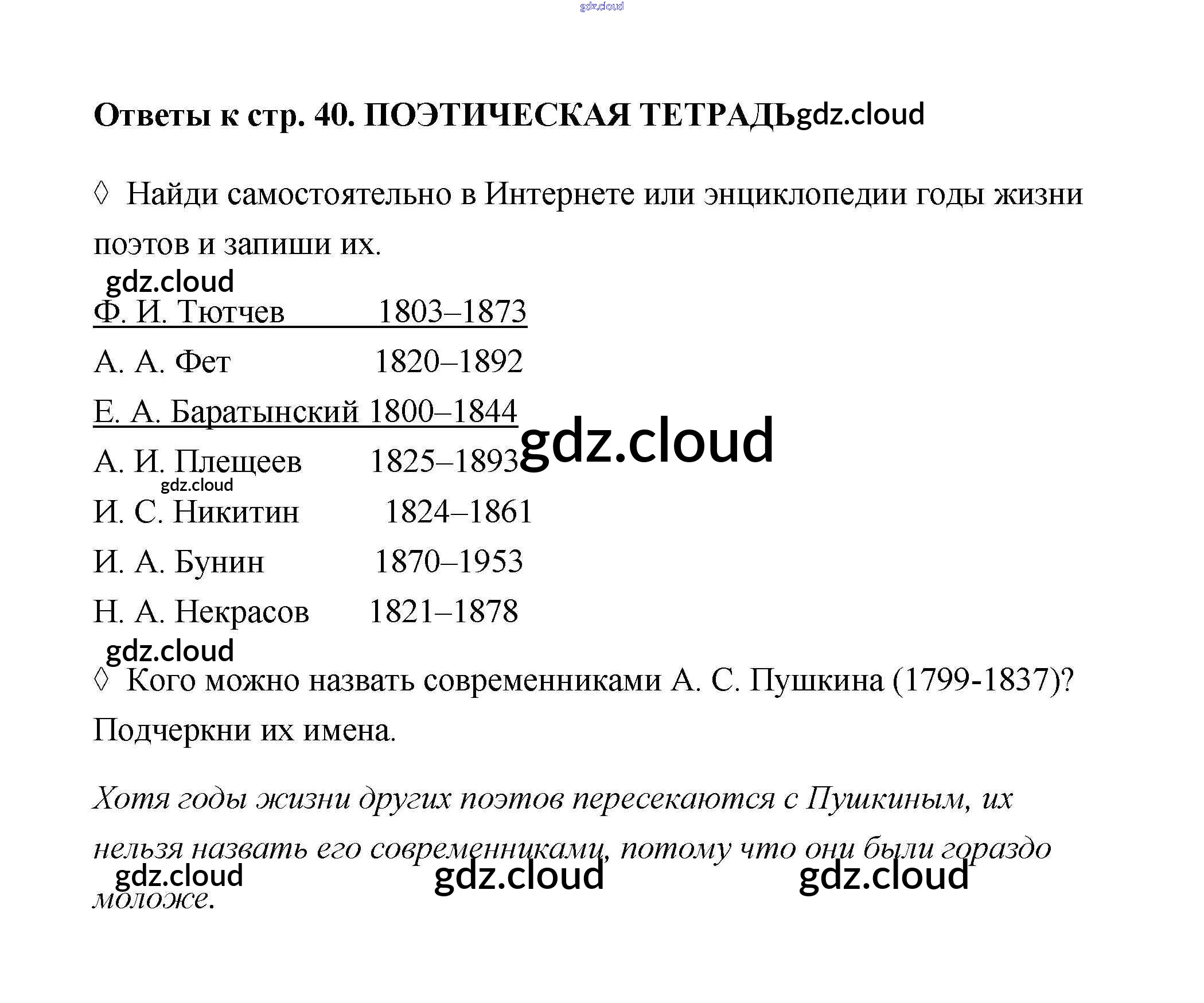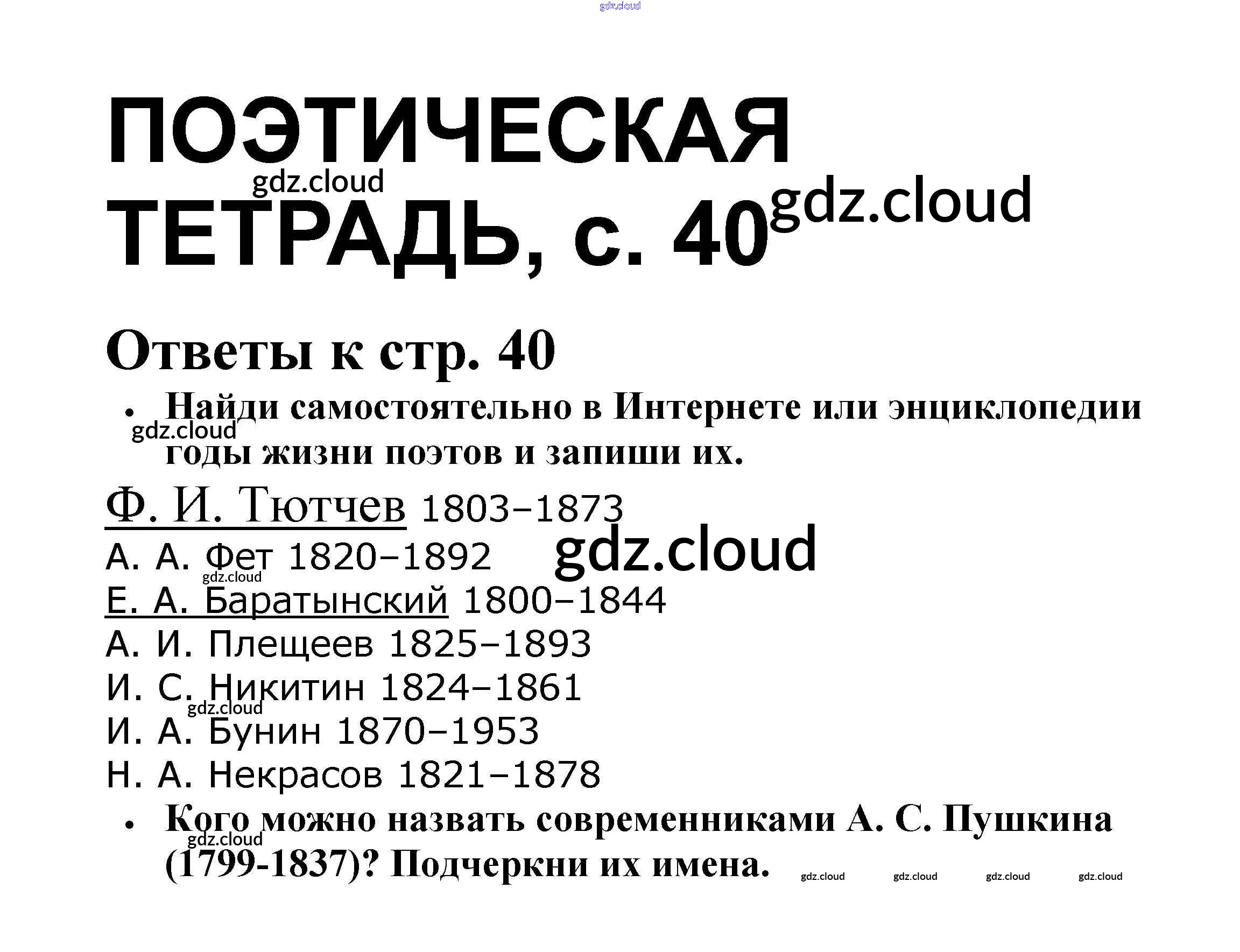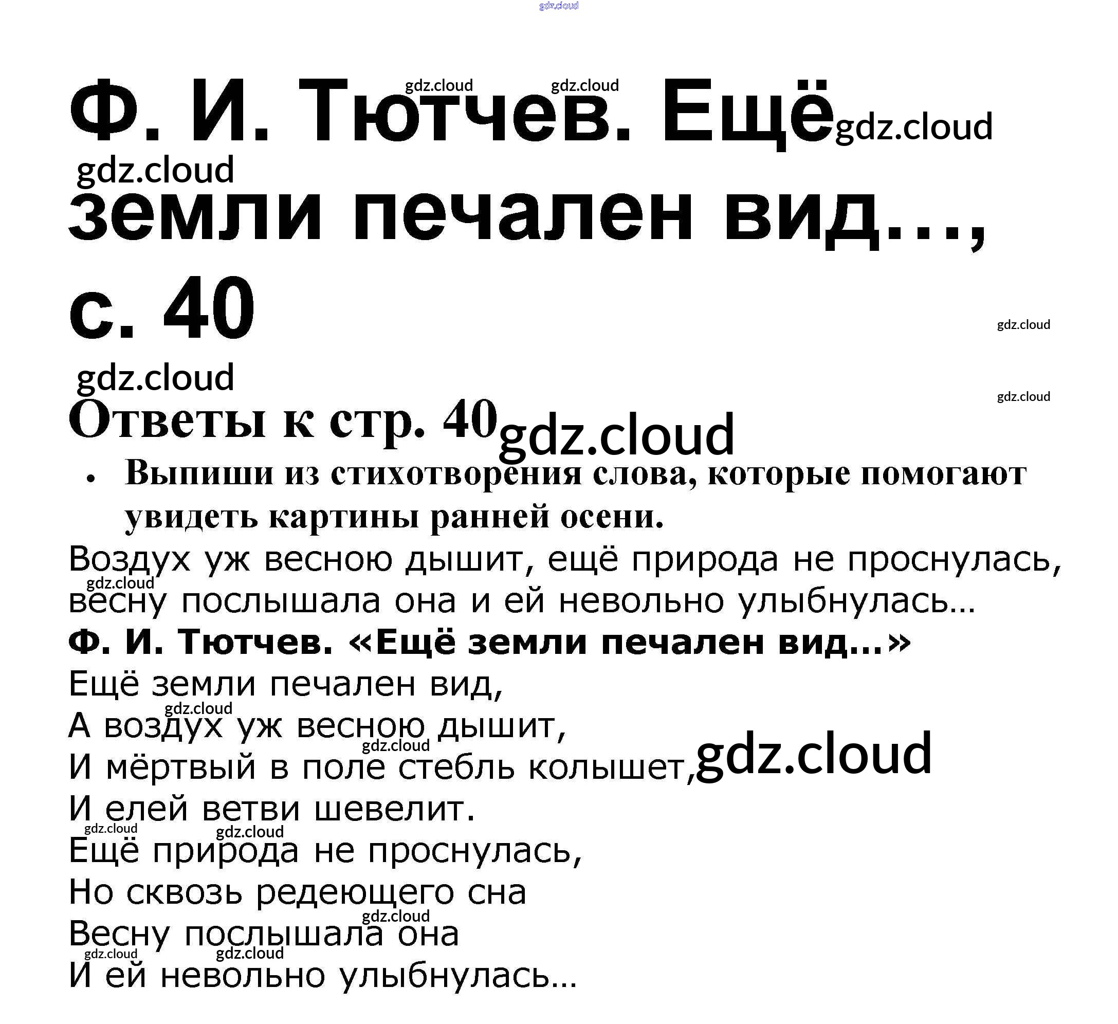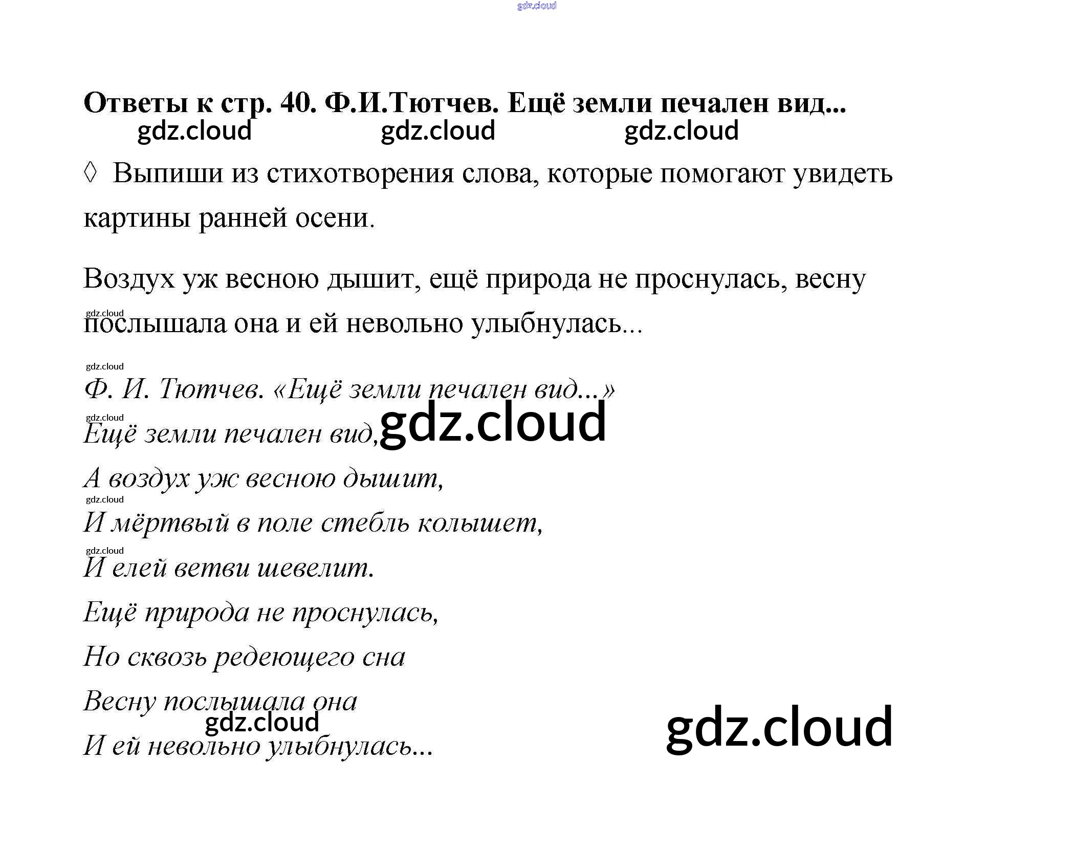 Ответ на задание 40 Рабочая тетрадь Литература за 4 (четвертый) класс Бойкина, Виноградская Школа России 2016