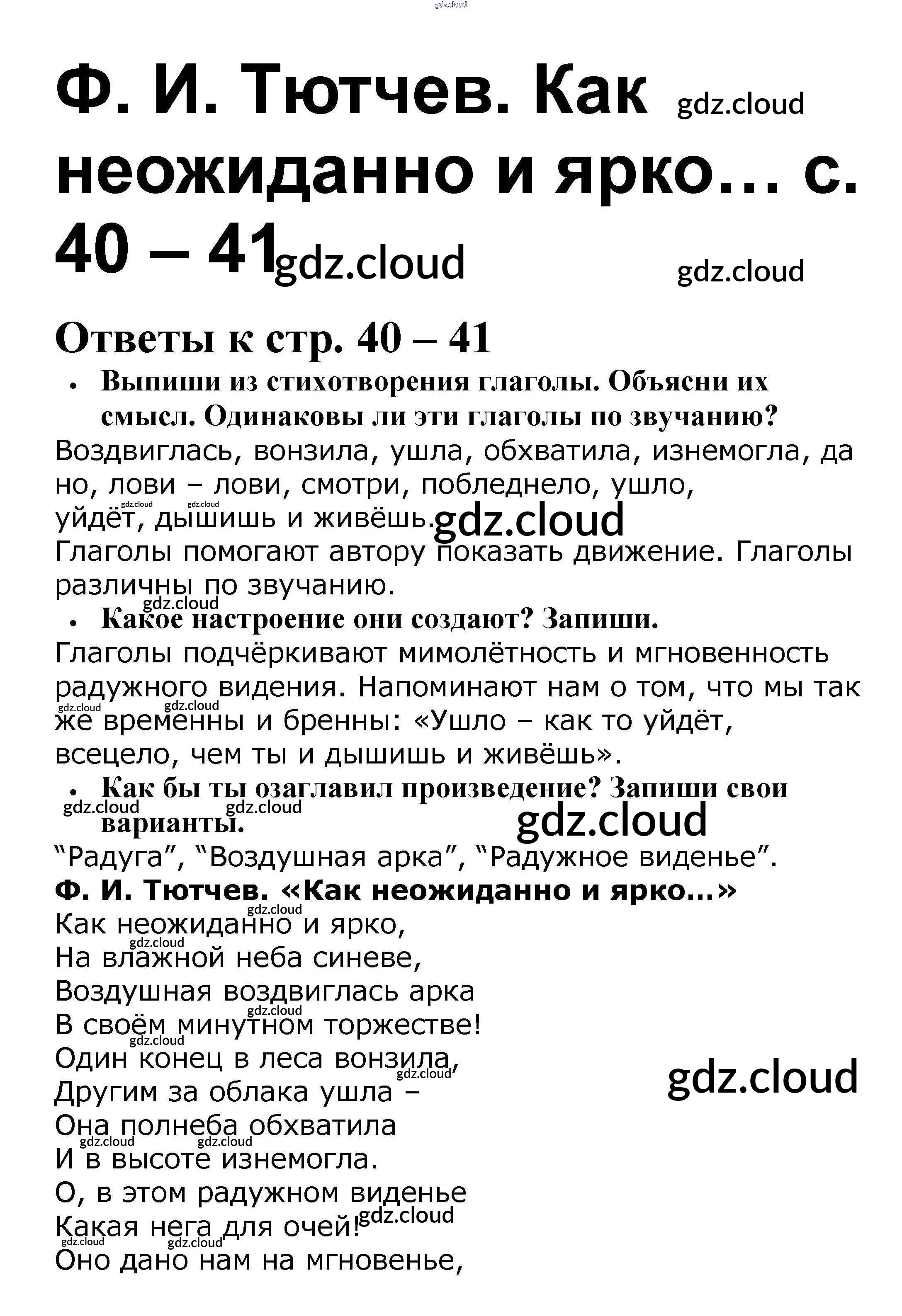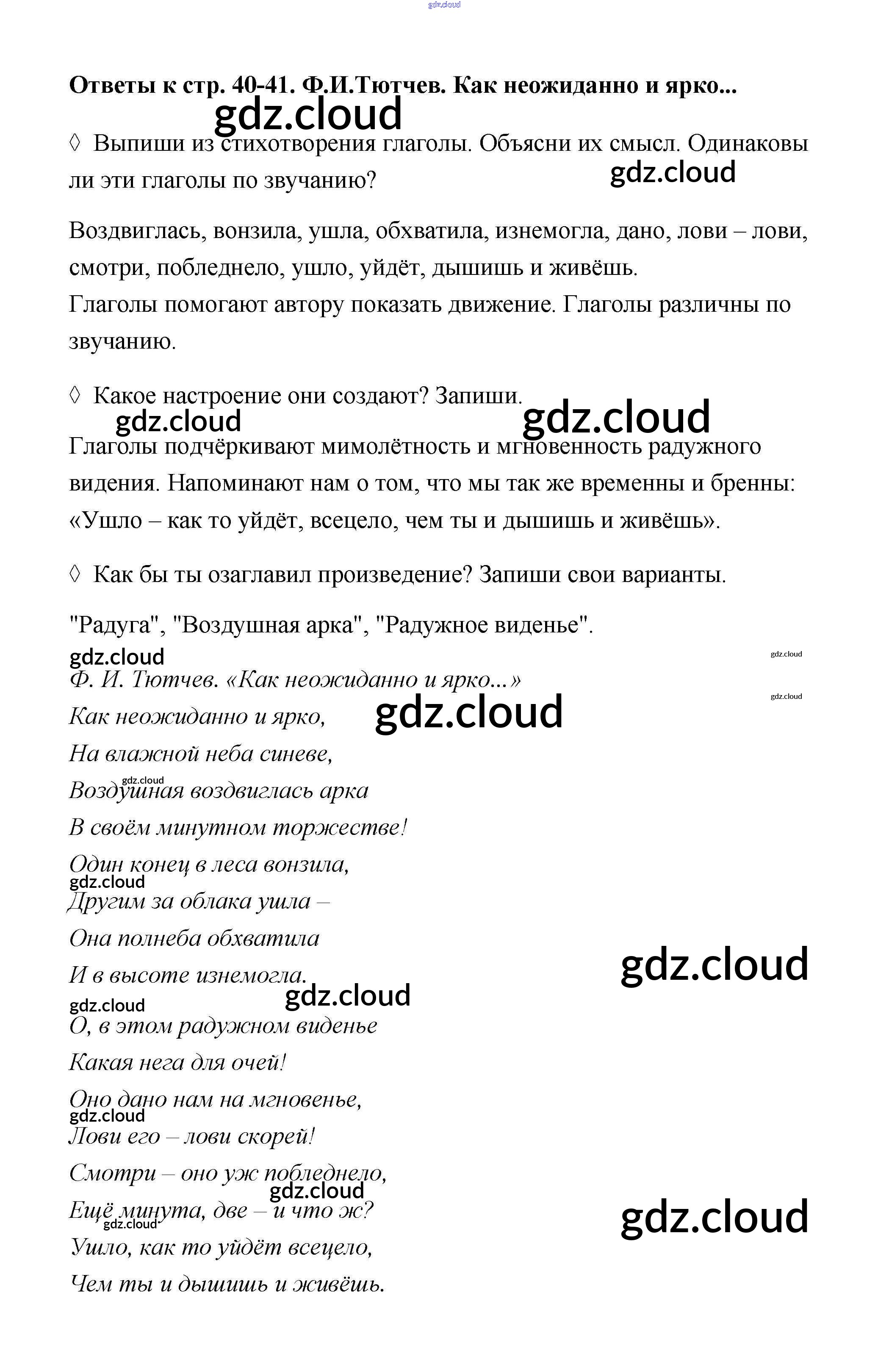 Ответ на задание 40-41 Рабочая тетрадь Литература за 4 (четвертый) класс Бойкина, Виноградская Школа России 2016