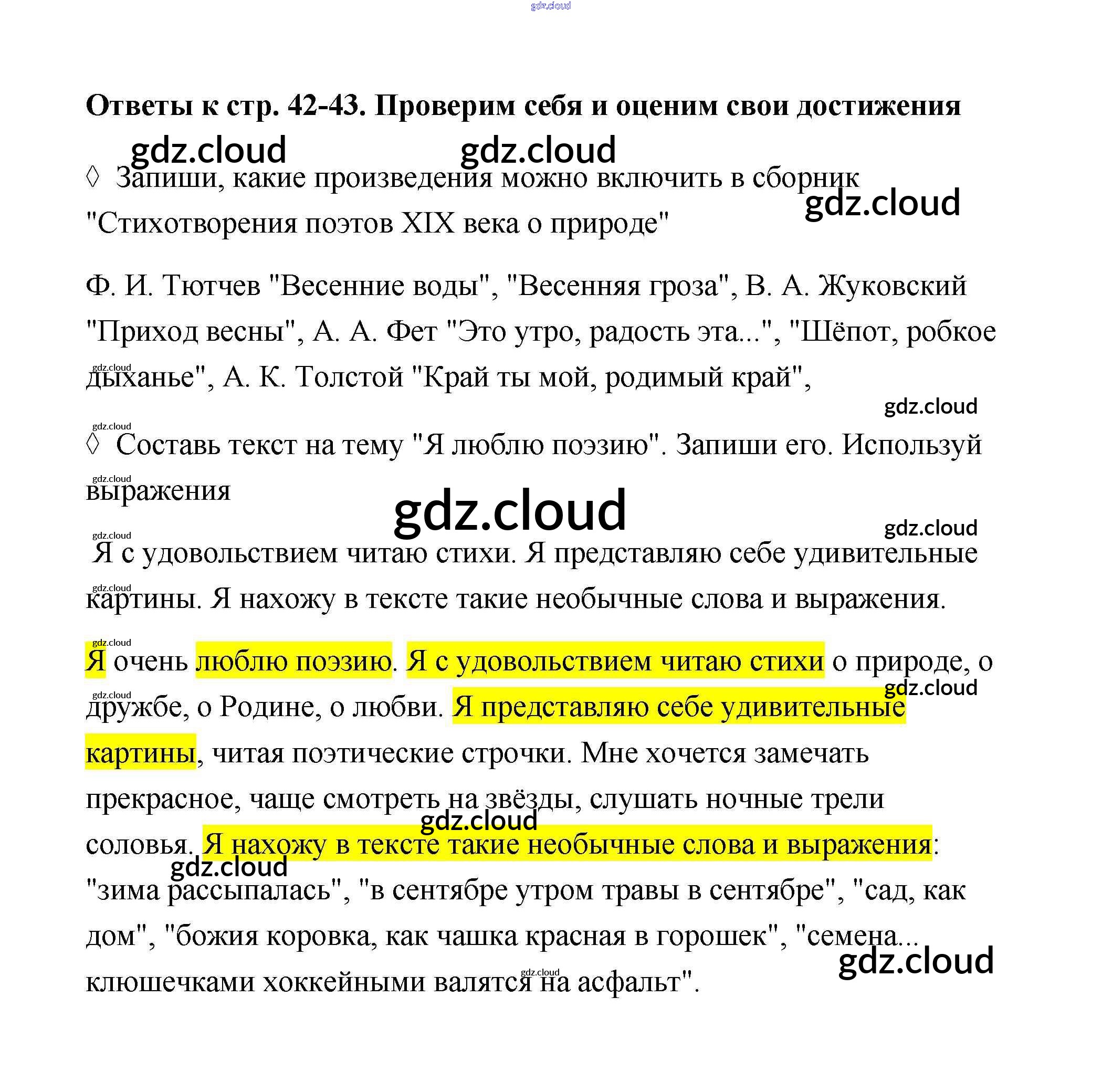 Ответ на задание 42-43 Рабочая тетрадь Литература за 4 (четвертый) класс Бойкина, Виноградская Школа России 2016