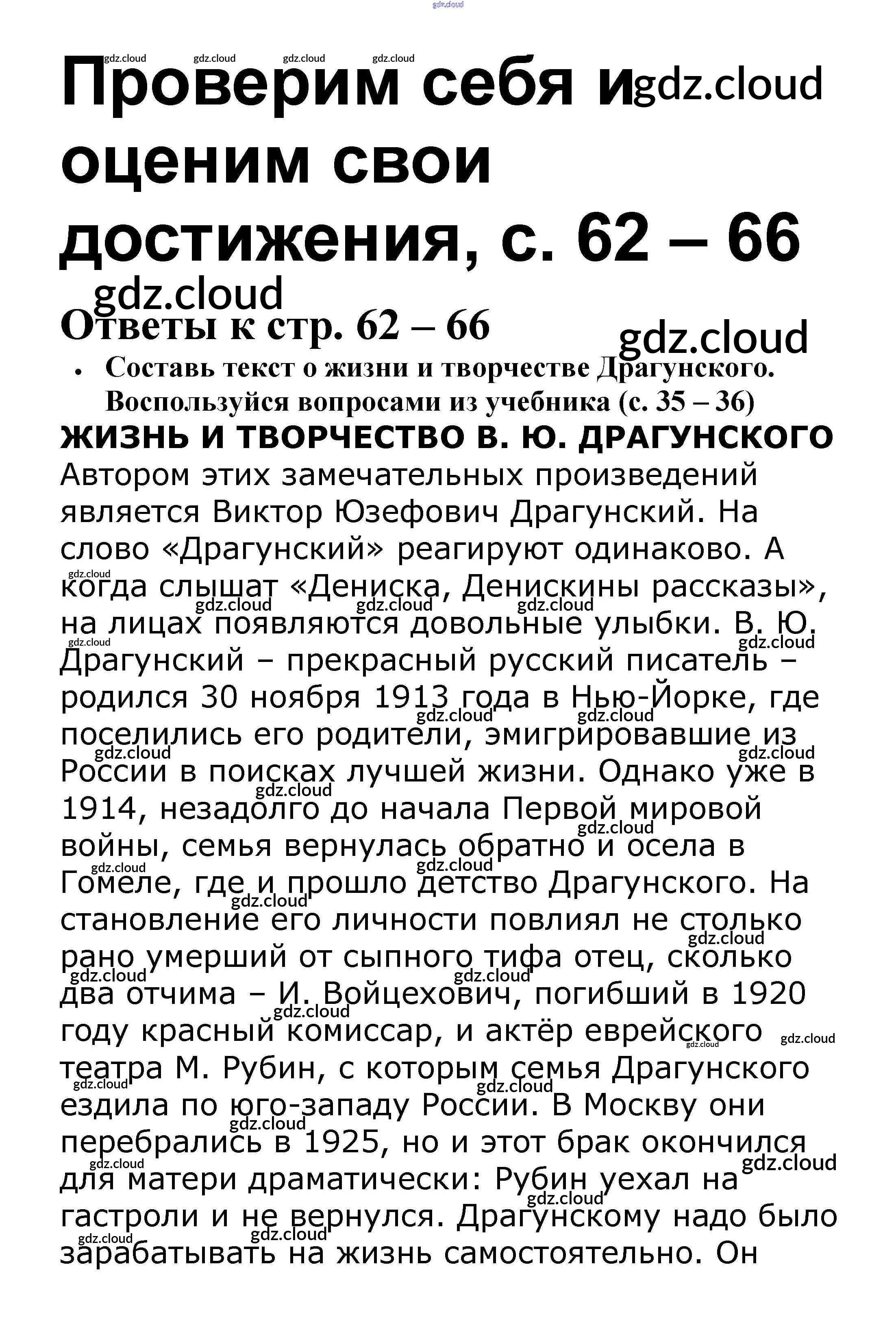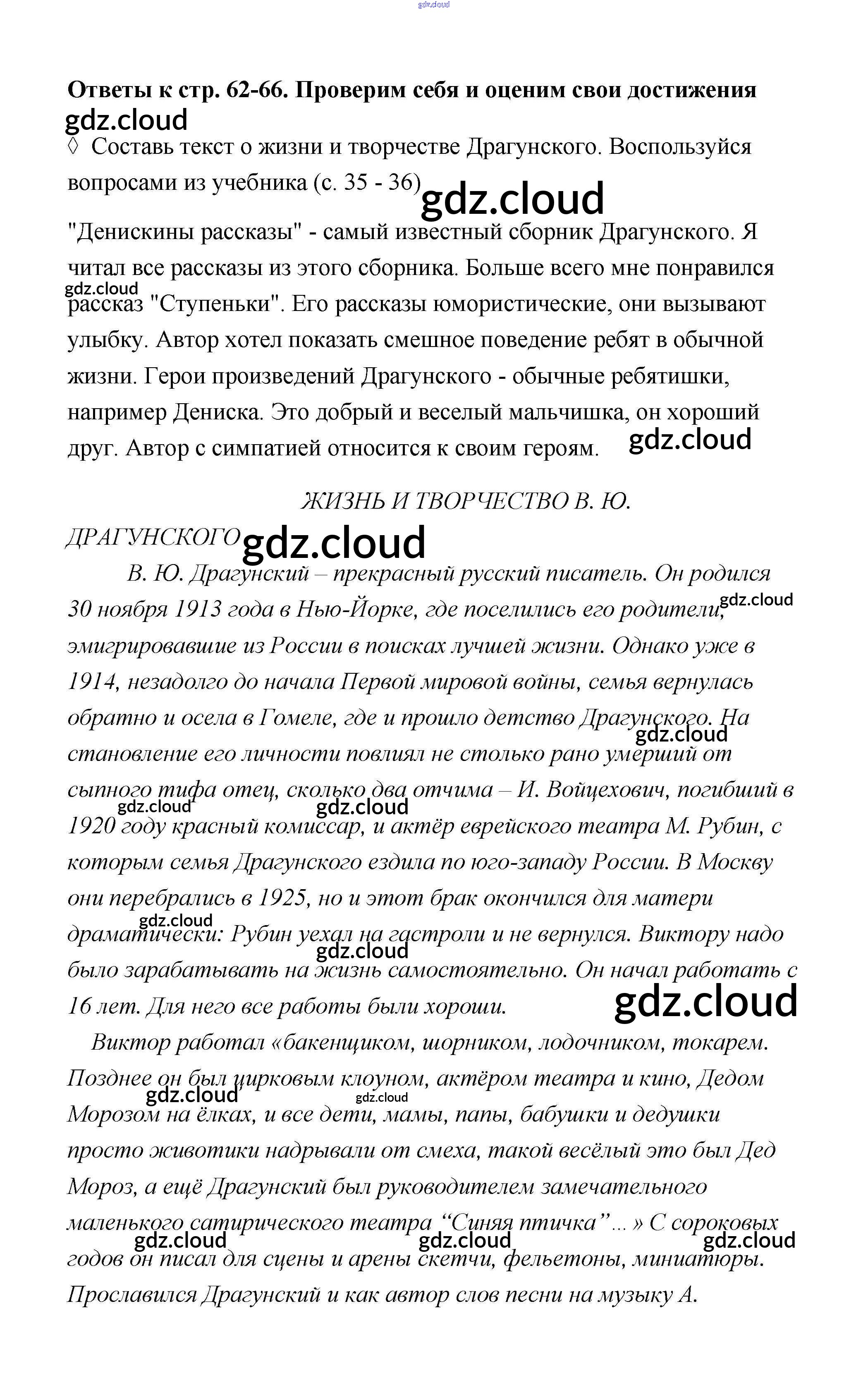 Ответ на задание 62-66 Рабочая тетрадь Литература за 4 (четвертый) класс Бойкина, Виноградская Школа России 2016