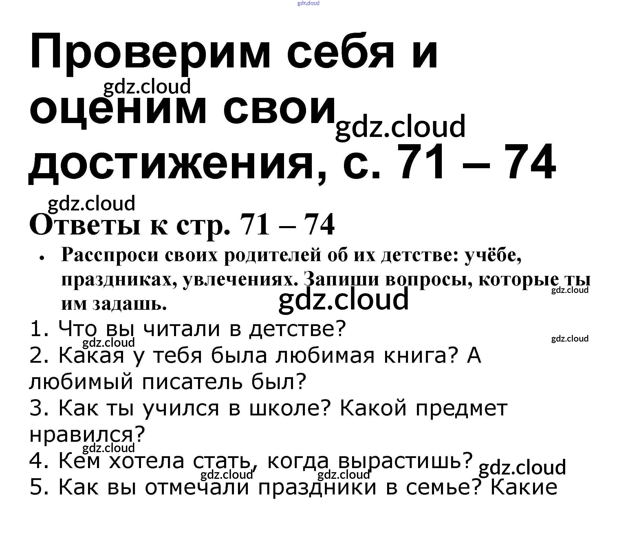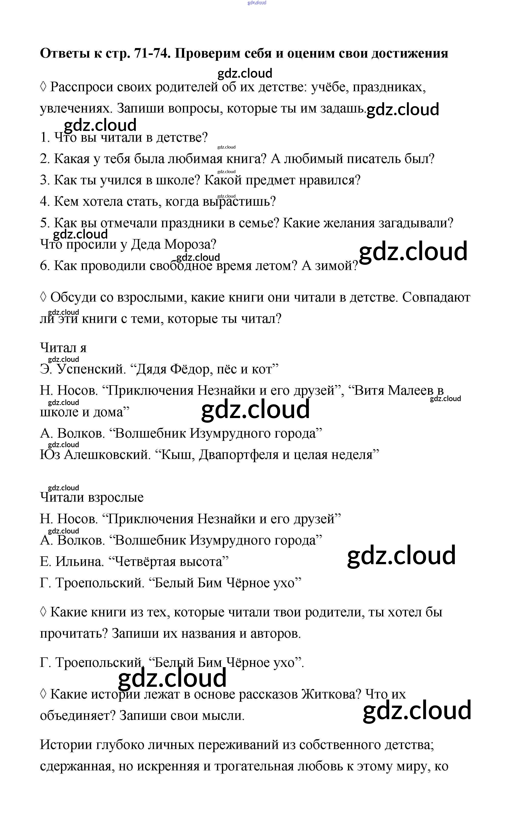 Ответ на задание 71-74 Рабочая тетрадь Литература за 4 (четвертый) класс Бойкина, Виноградская Школа России 2016