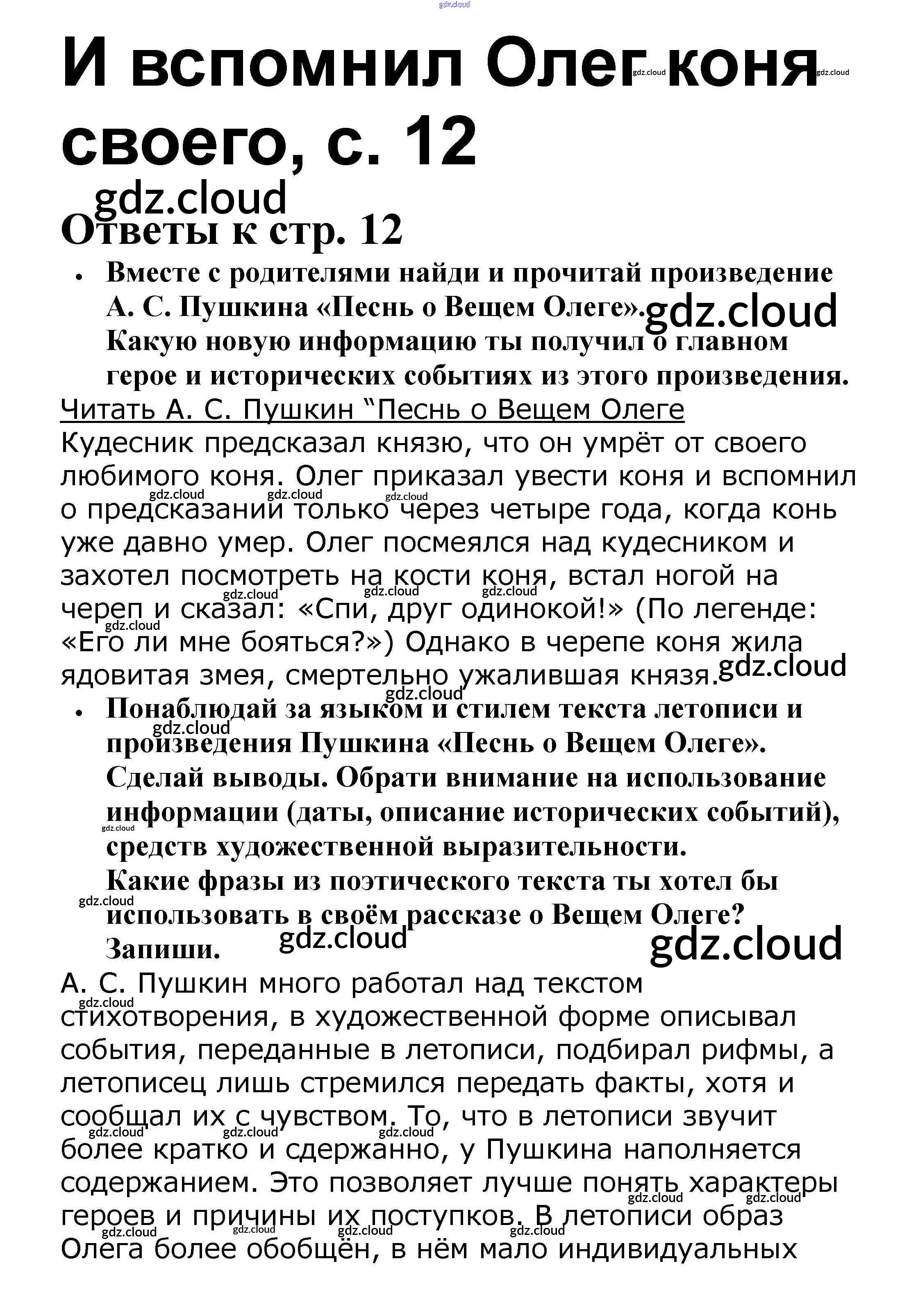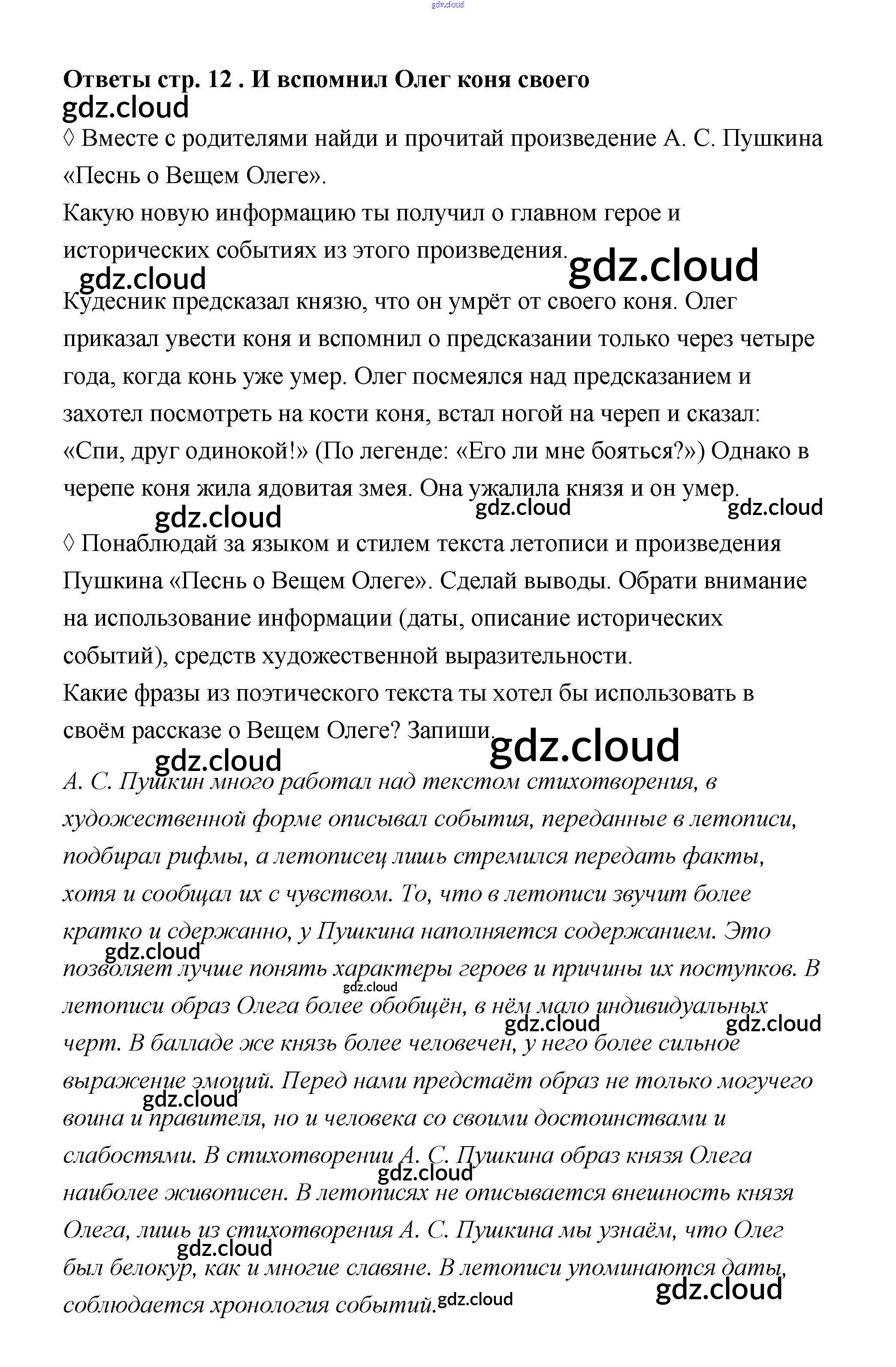 Ответ на задание 12 Рабочая тетрадь Литература за 4 (четвертый) класс Бойкина, Виноградская Школа России 2016