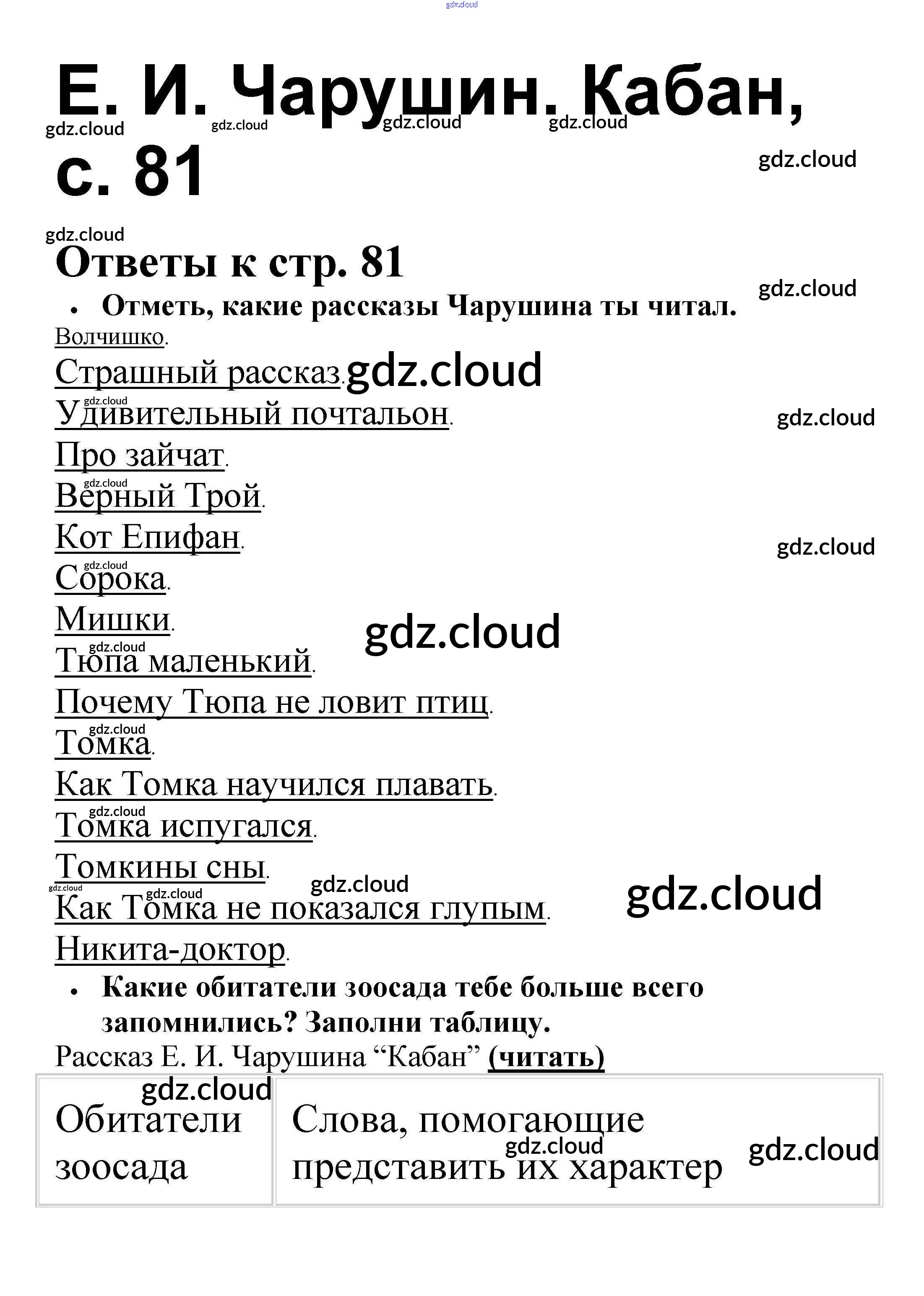 Ответ на задание 81 Рабочая тетрадь Литература за 4 (четвертый) класс Бойкина, Виноградская Школа России 2016