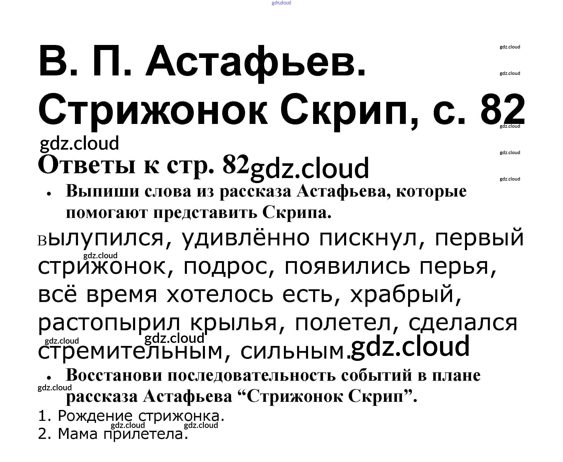 Ответ на задание 82 Рабочая тетрадь Литература за 4 (четвертый) класс Бойкина, Виноградская Школа России 2016