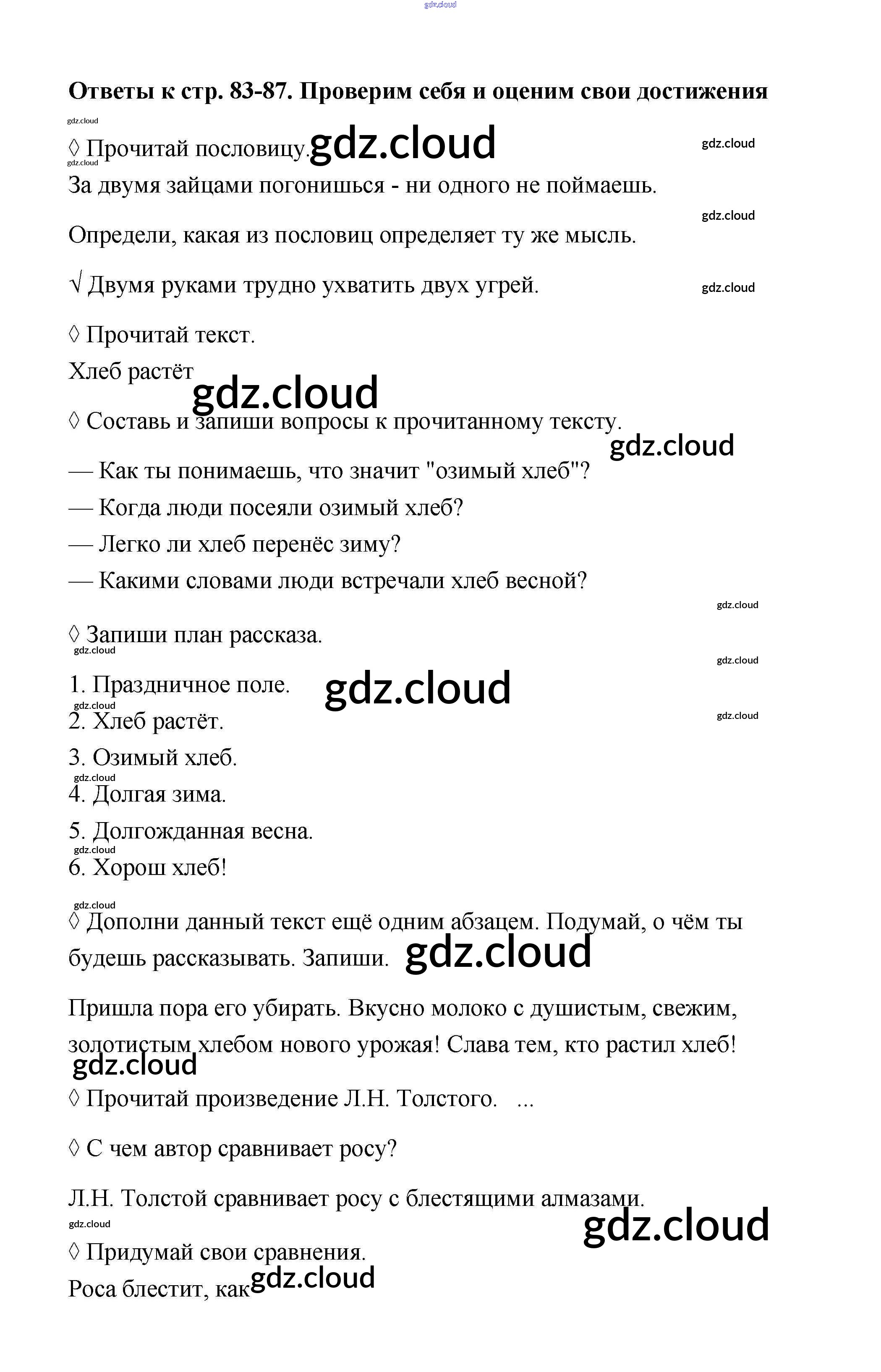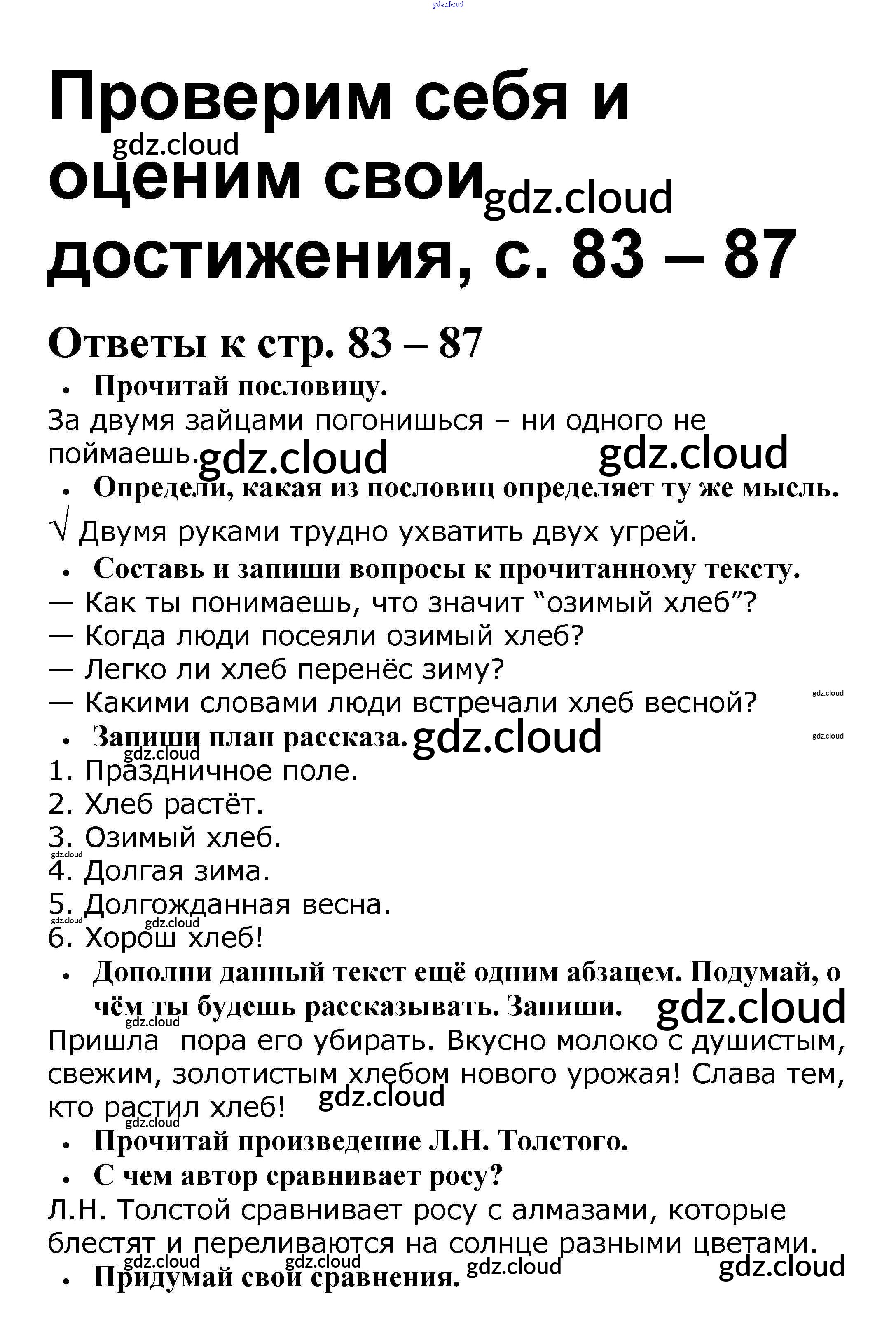 Ответ на задание 83-87 Рабочая тетрадь Литература за 4 (четвертый) класс Бойкина, Виноградская Школа России 2016