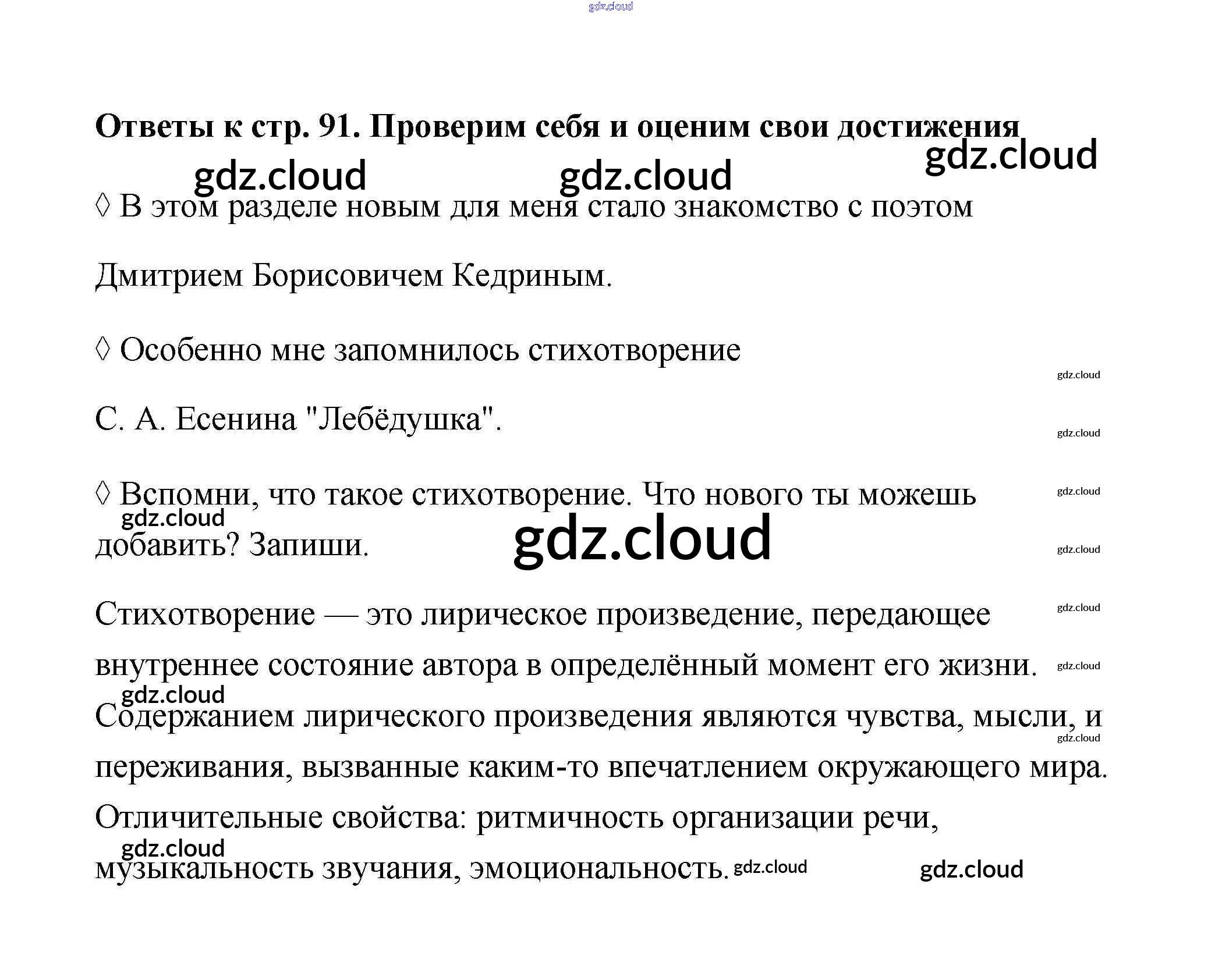 Ответ на задание 91 Рабочая тетрадь Литература за 4 (четвертый) класс Бойкина, Виноградская Школа России 2016
