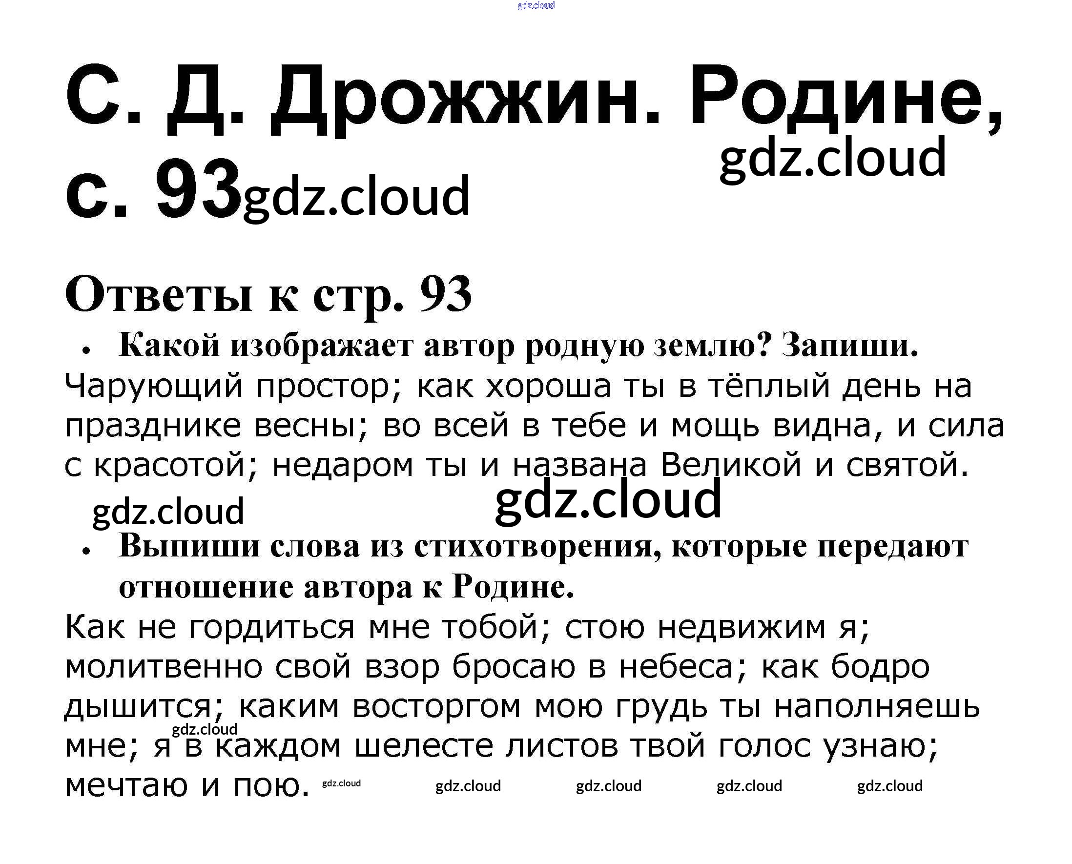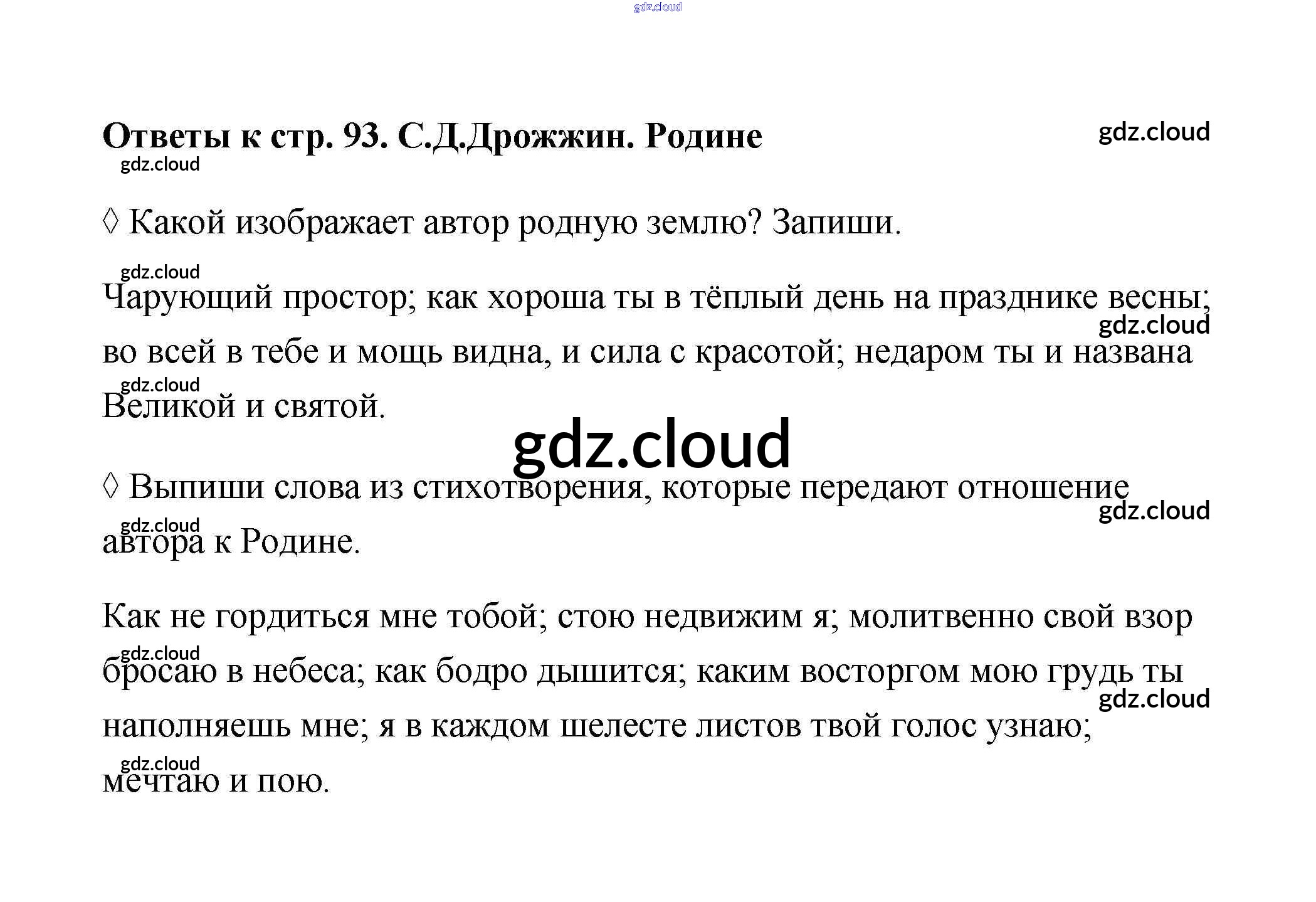 Ответ на задание 93 Рабочая тетрадь Литература за 4 (четвертый) класс Бойкина, Виноградская Школа России 2016