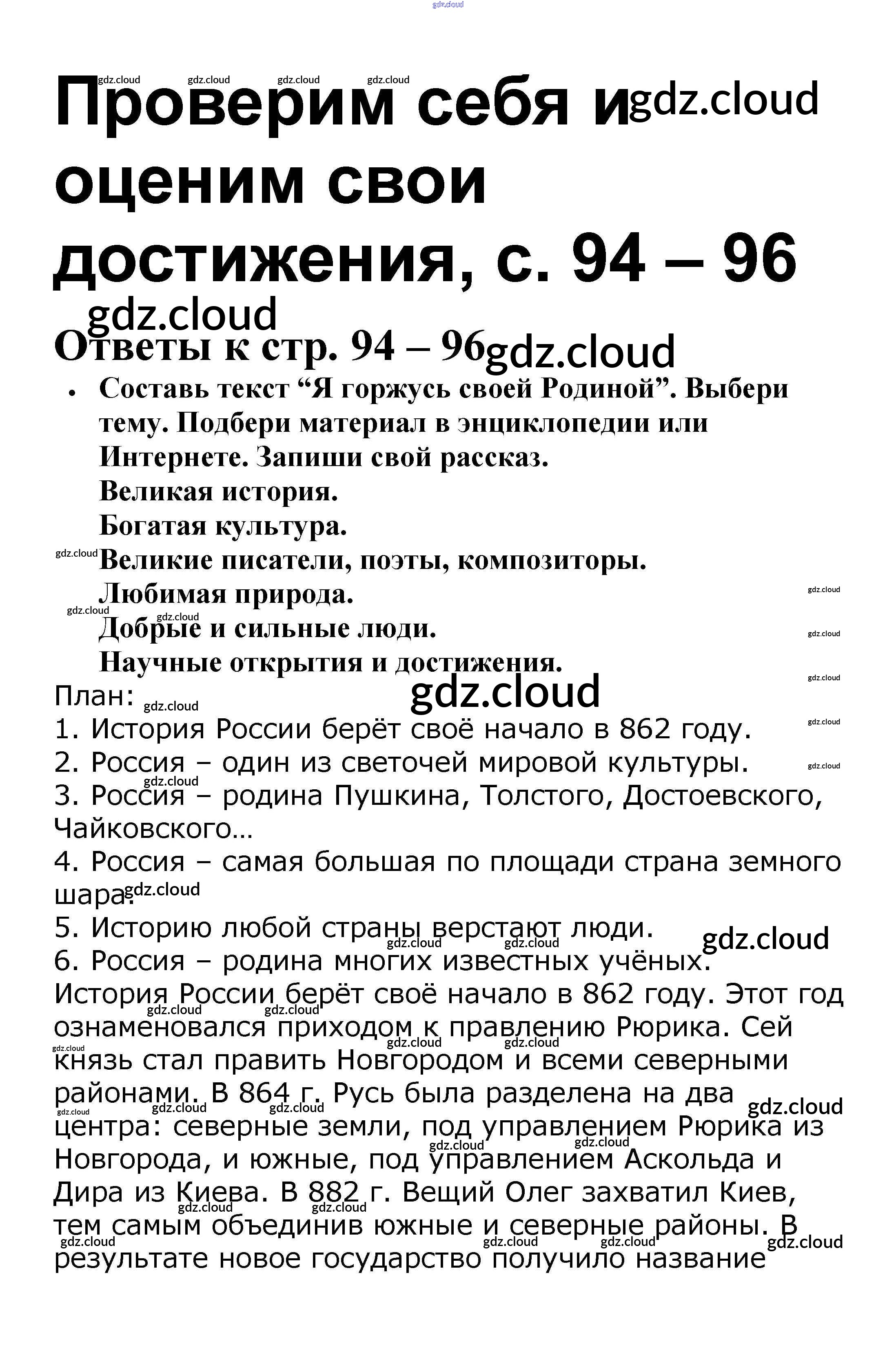 Ответ на задание 94-96 Рабочая тетрадь Литература за 4 (четвертый) класс Бойкина, Виноградская Школа России 2016