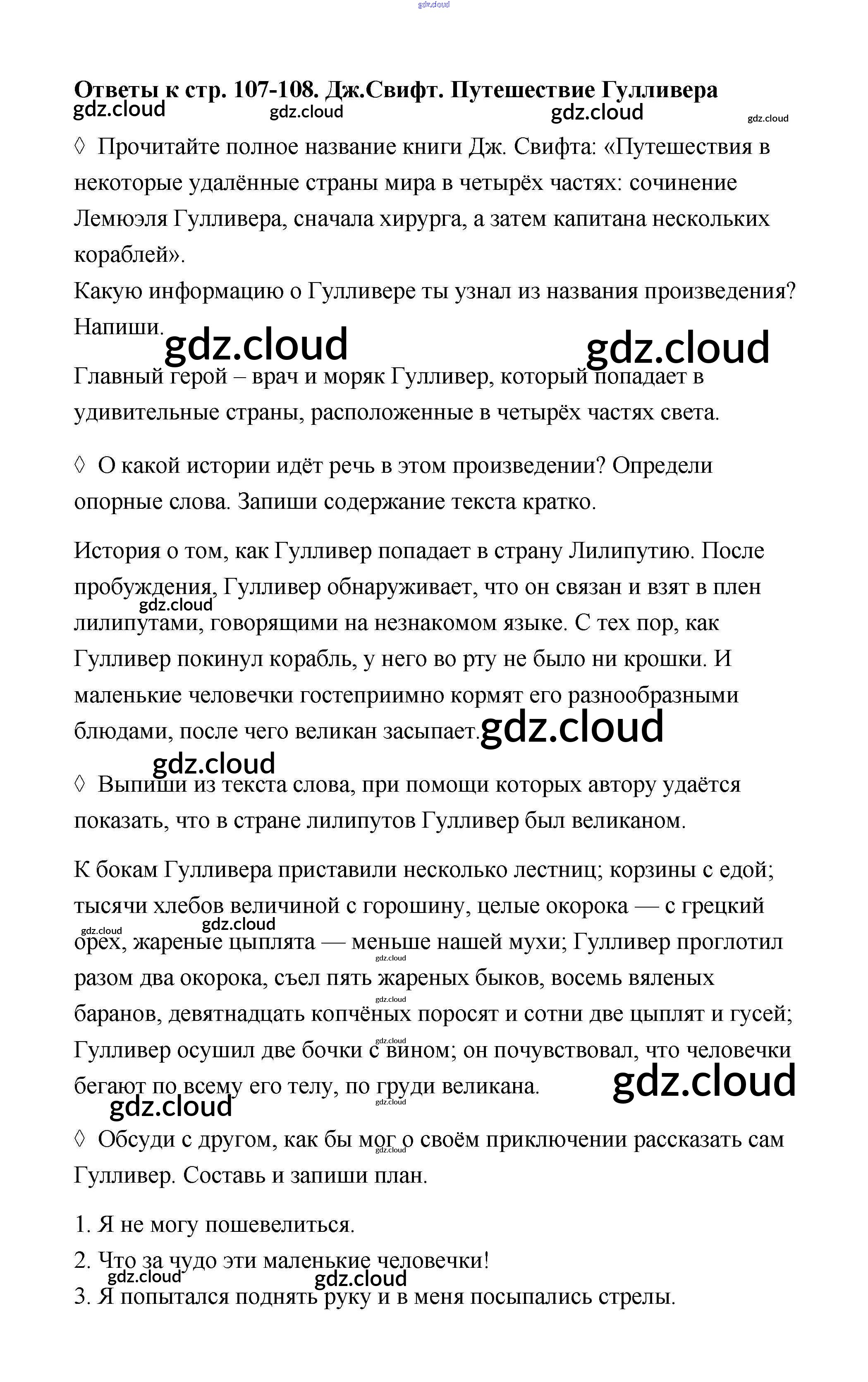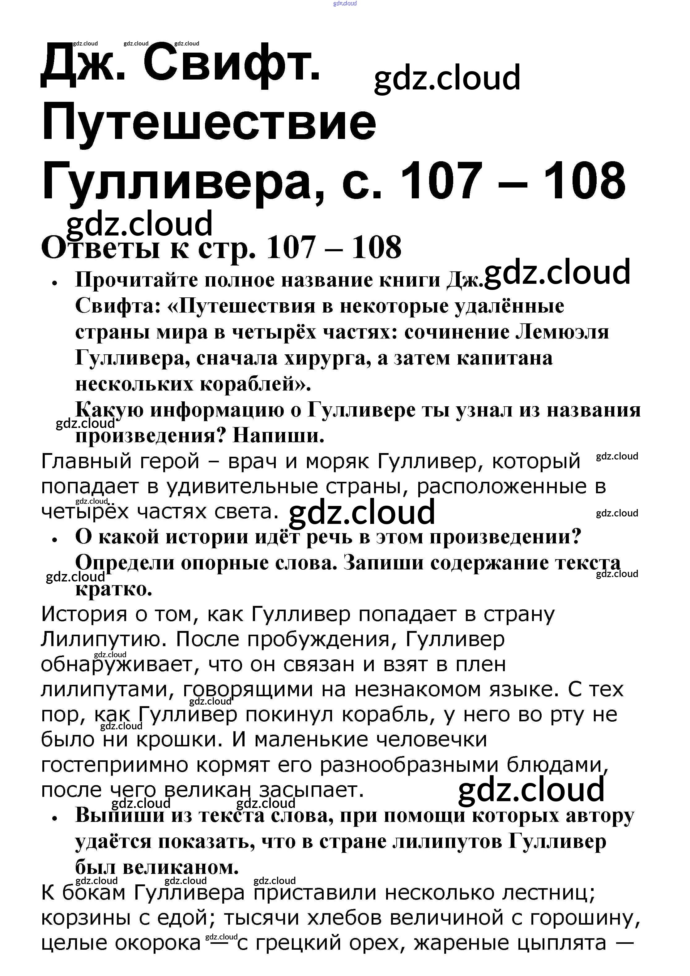 Ответ на задание 107-108 Рабочая тетрадь Литература за 4 (четвертый) класс Бойкина, Виноградская Школа России 2016