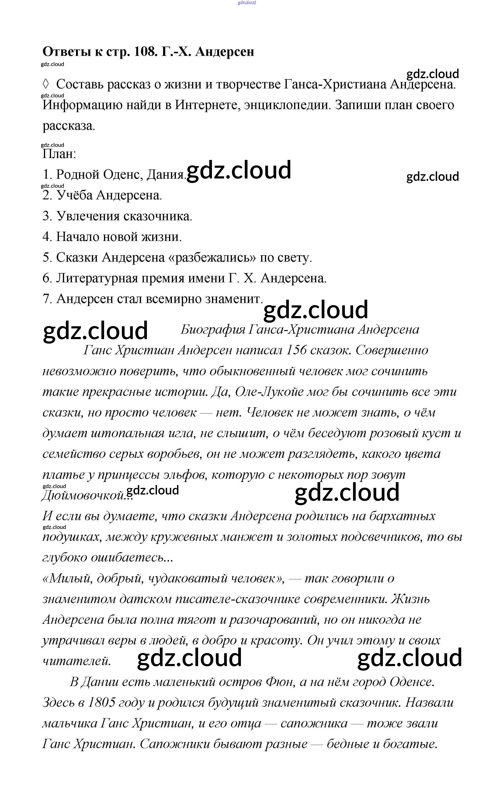 Ответ на задание 108 Рабочая тетрадь Литература за 4 (четвертый) класс Бойкина, Виноградская Школа России 2016