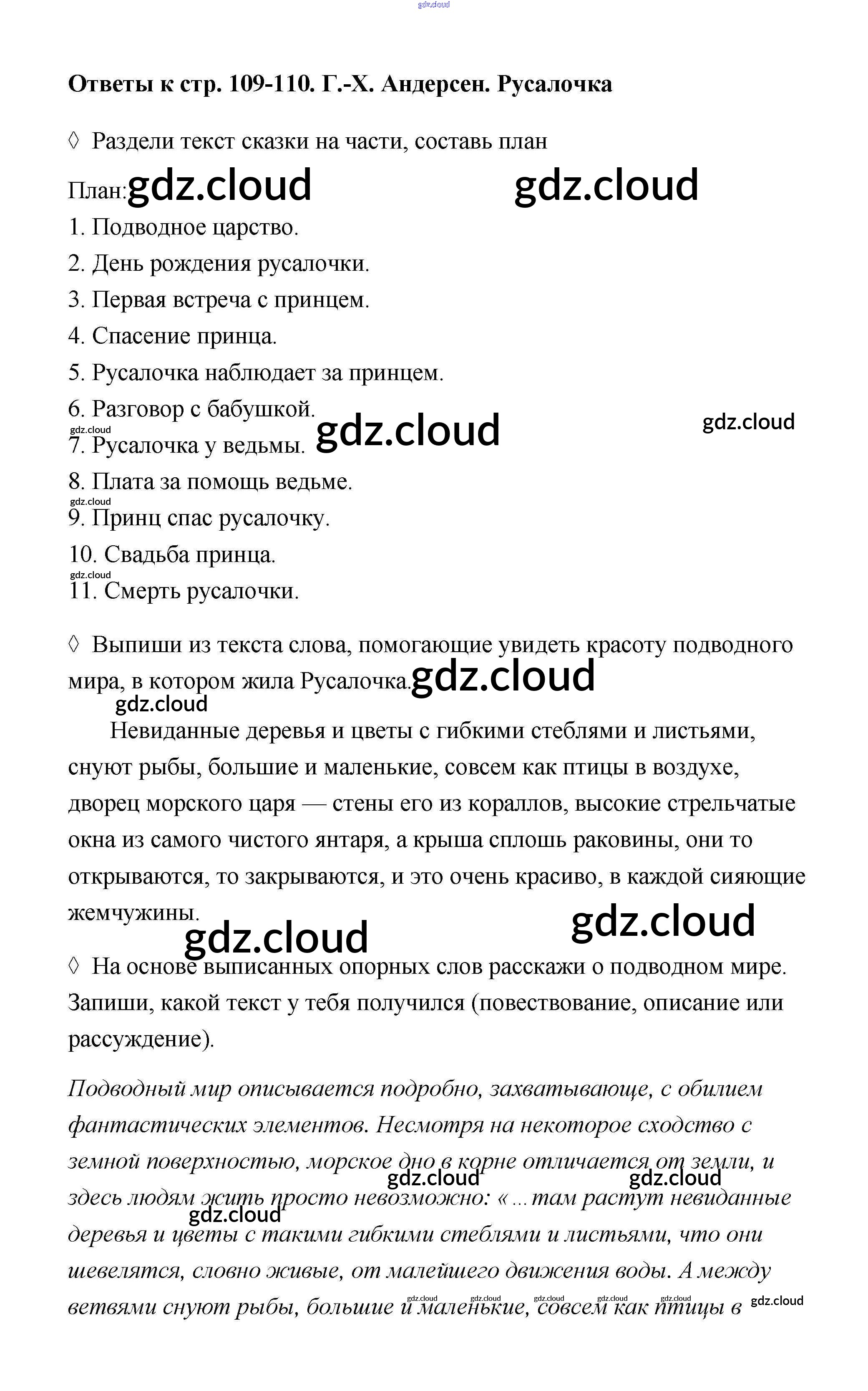 Ответ на задание 109-110 Рабочая тетрадь Литература за 4 (четвертый) класс Бойкина, Виноградская Школа России 2016