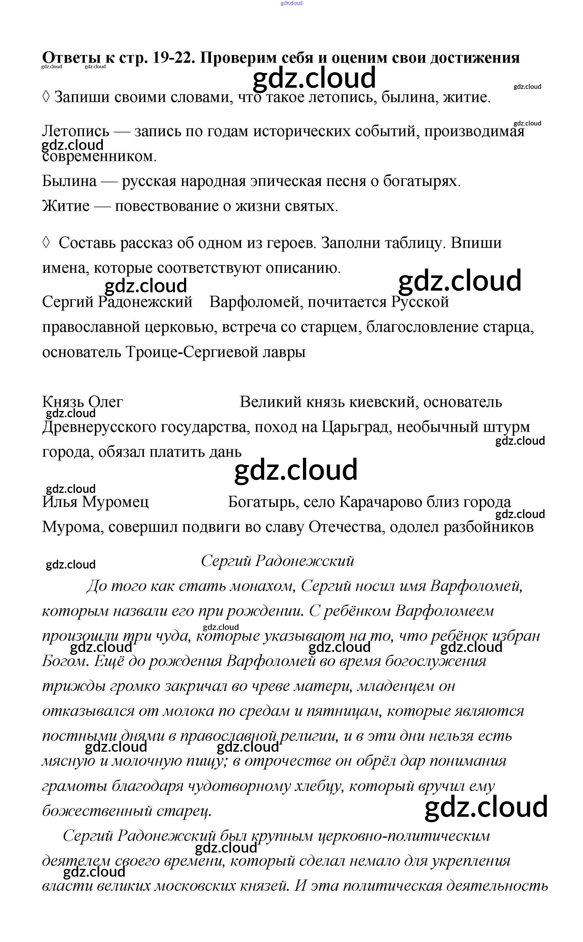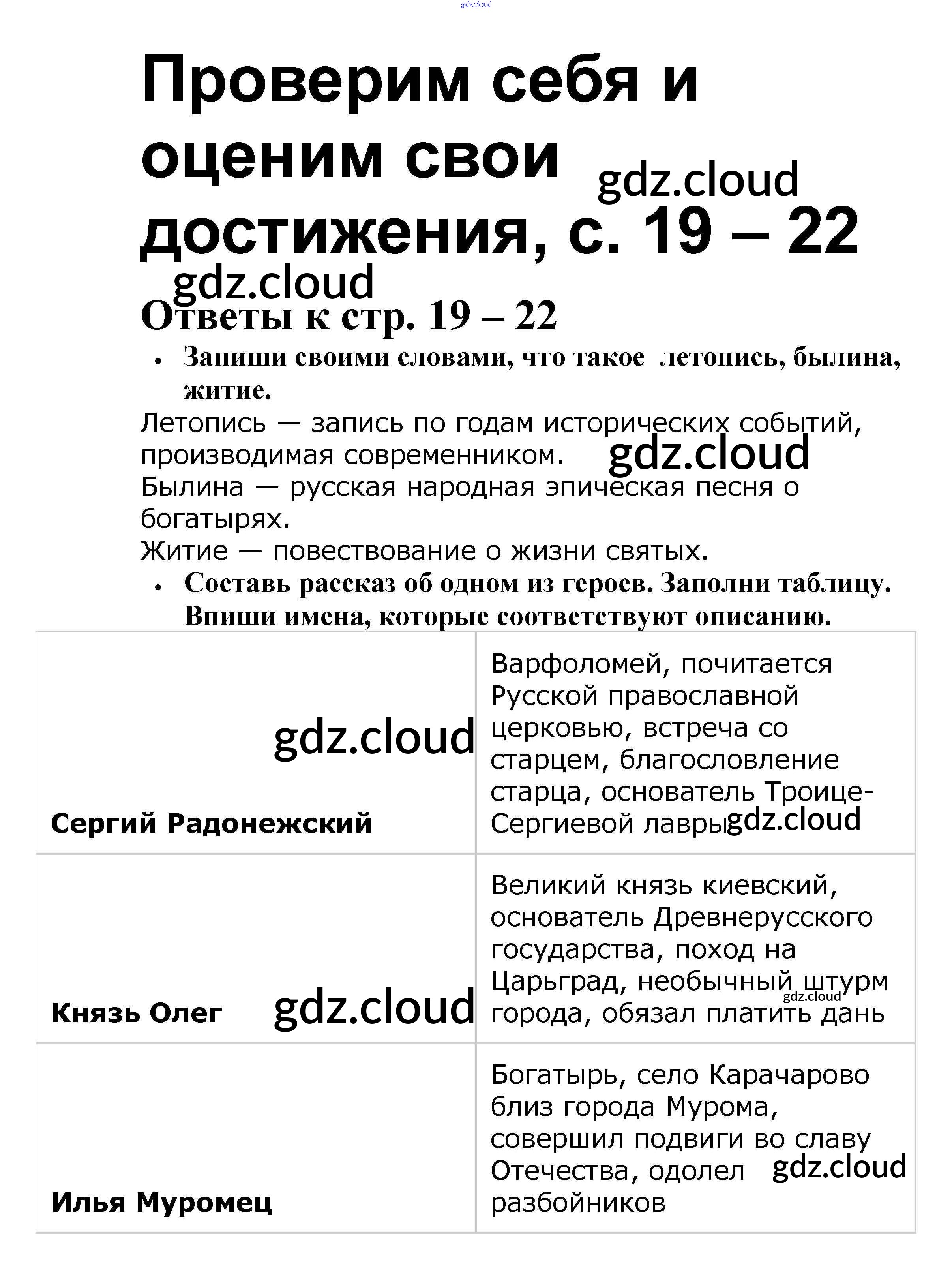 Ответ на задание 19-22 Рабочая тетрадь Литература за 4 (четвертый) класс Бойкина, Виноградская Школа России 2016