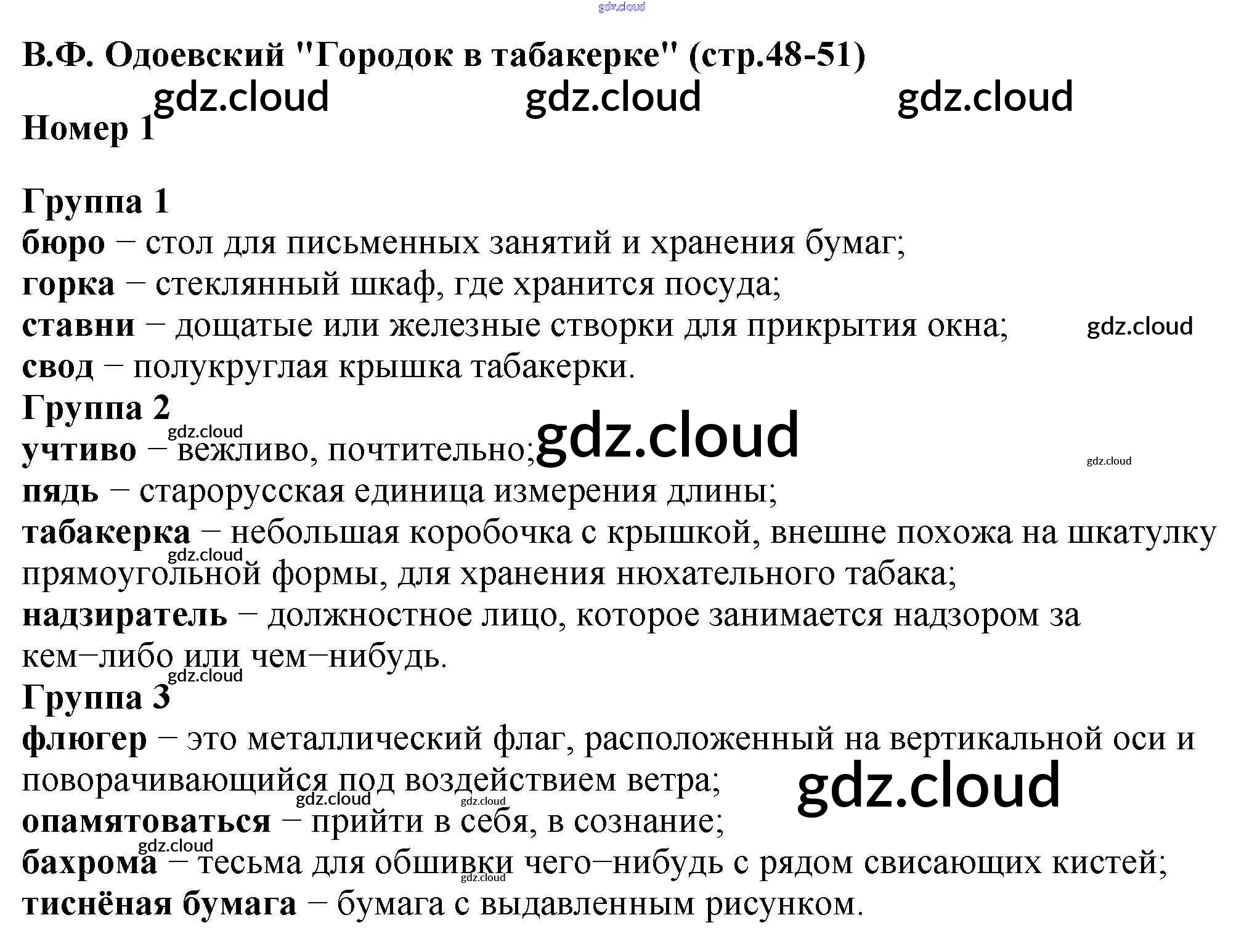 тетрадь №1 / литературные сказки / В.Ф. Одоевский "Городок в табакерке" / 1