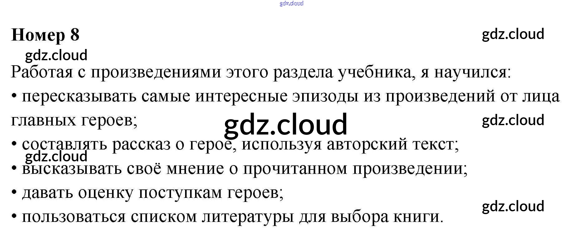 Ответ на задание 8 Рабочая тетрадь Литература за 4 (четвертый) класс Тихомирова УМК 2020 Часть 1, 2