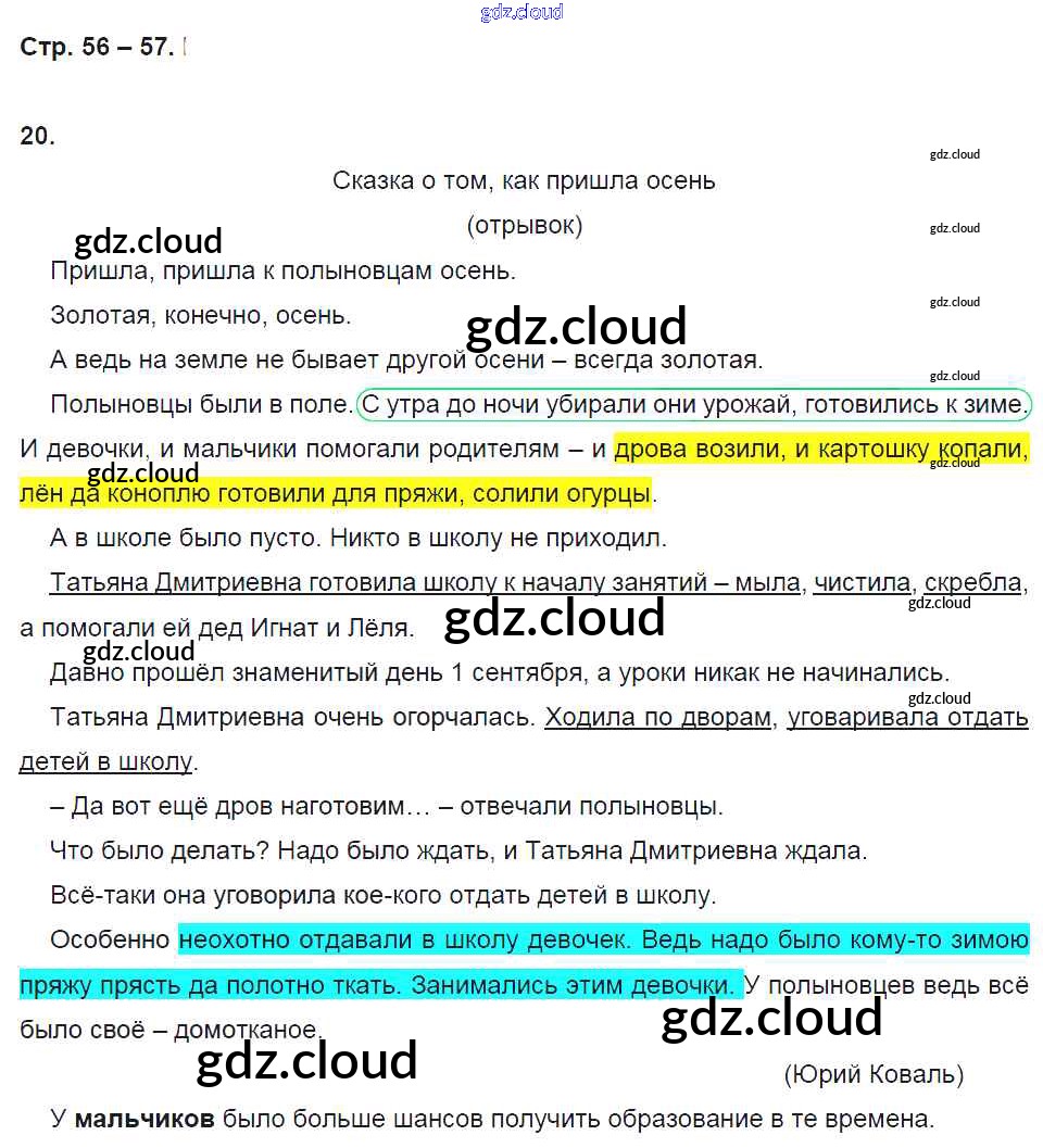Ответ на задание стр.56 Тетрадь для самостоятельной работы Литература за 4 (четвертый) класс Чуракова УМК 2019 Часть 1, 2