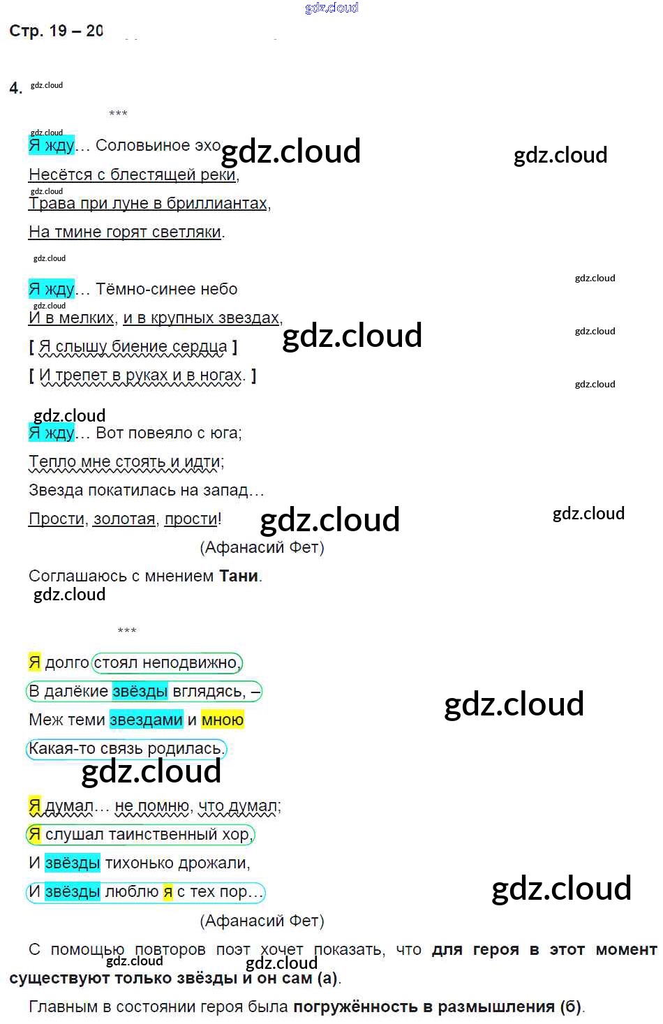 Ответ на задание стр.20 Тетрадь для самостоятельной работы Литература за 4 (четвертый) класс Чуракова УМК 2019 Часть 1, 2