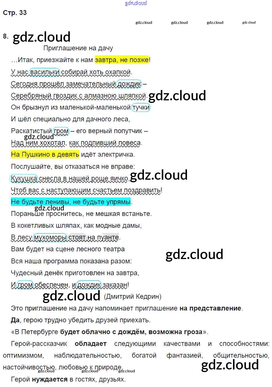 Ответ на задание стр.33 Тетрадь для самостоятельной работы Литература за 4 (четвертый) класс Чуракова УМК 2019 Часть 1, 2