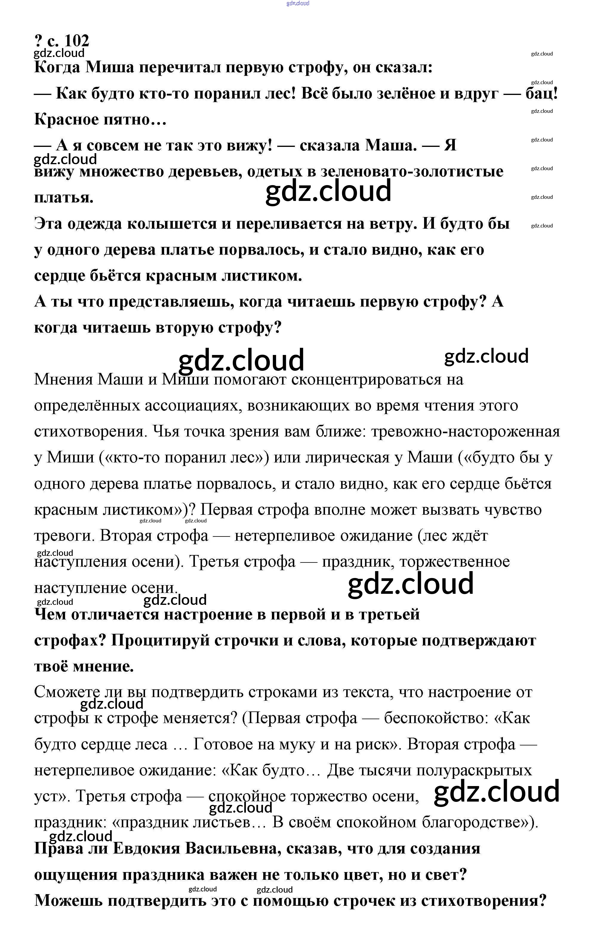 Ответ на задание стр.102 Учебник Литература за 4 (четвертый) класс Чуракова Перспективная начальная школа 2017 Часть 1, 2
