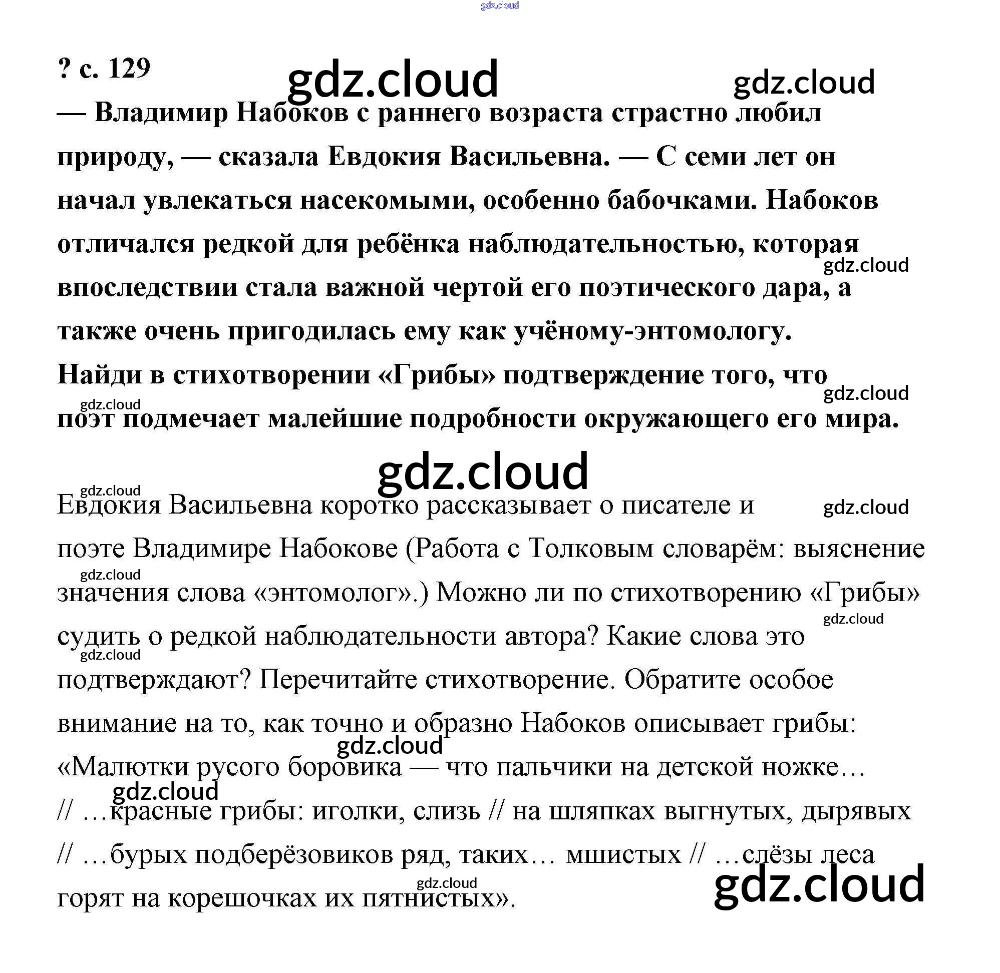 Ответ на задание стр.129 Учебник Литература за 4 (четвертый) класс Чуракова Перспективная начальная школа 2017 Часть 1, 2