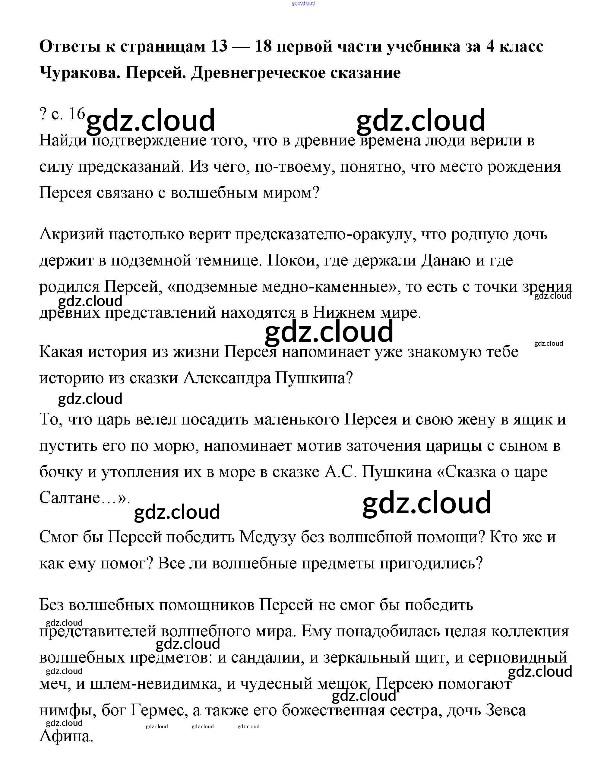 Ответ на задание стр.16 Учебник Литература за 4 (четвертый) класс Чуракова Перспективная начальная школа 2017 Часть 1, 2