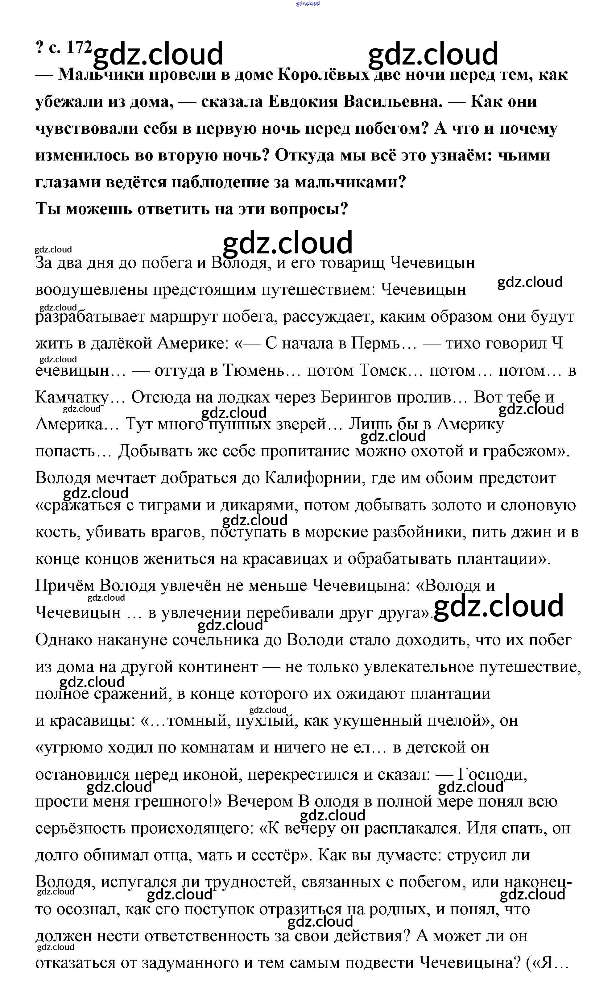 Ответ на задание стр.172 Учебник Литература за 4 (четвертый) класс Чуракова Перспективная начальная школа 2017 Часть 1, 2