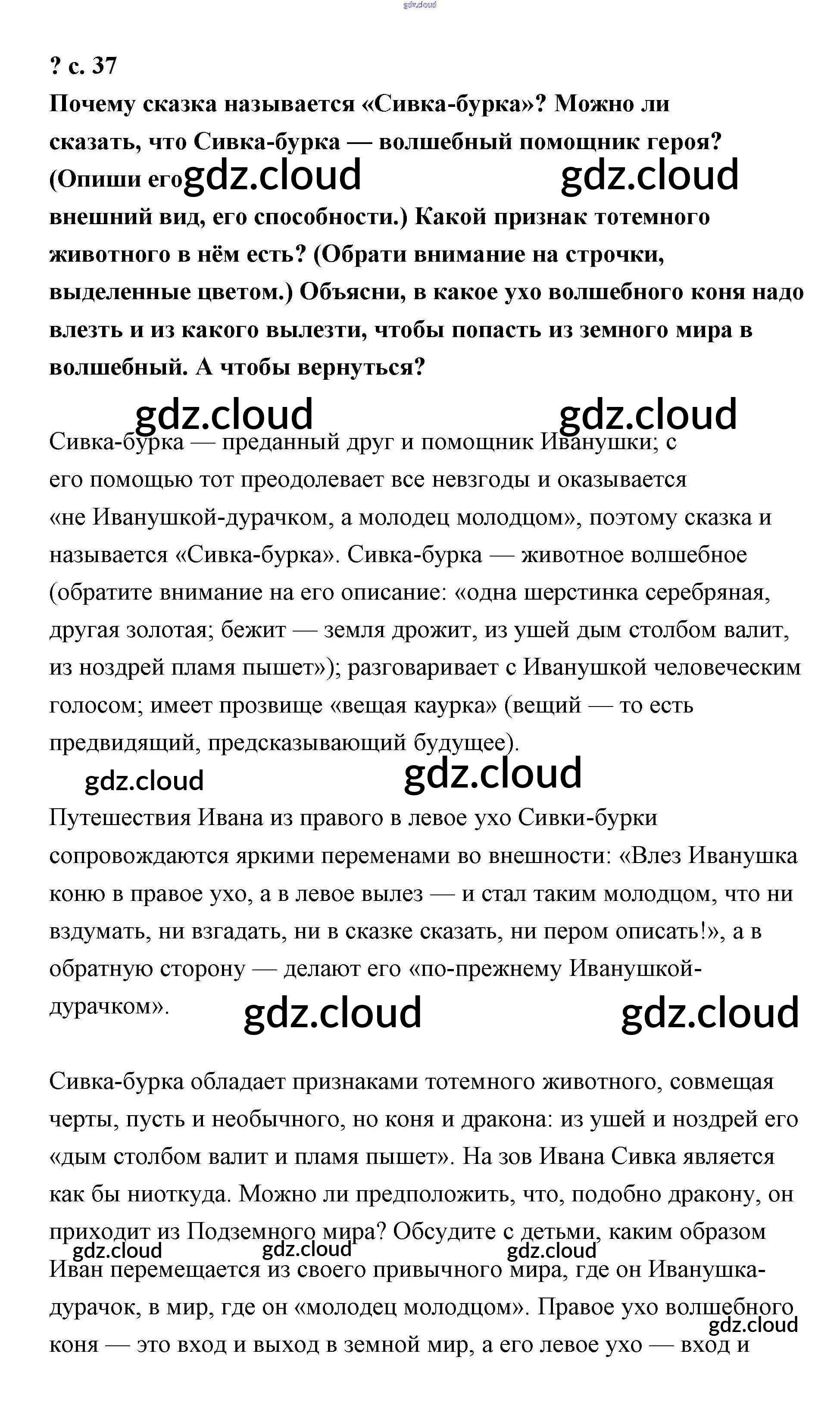 Ответ на задание стр.37 Учебник Литература за 4 (четвертый) класс Чуракова Перспективная начальная школа 2017 Часть 1, 2