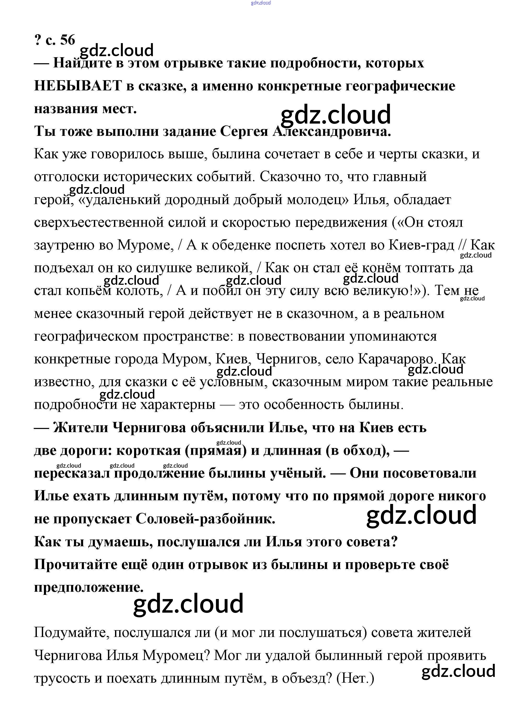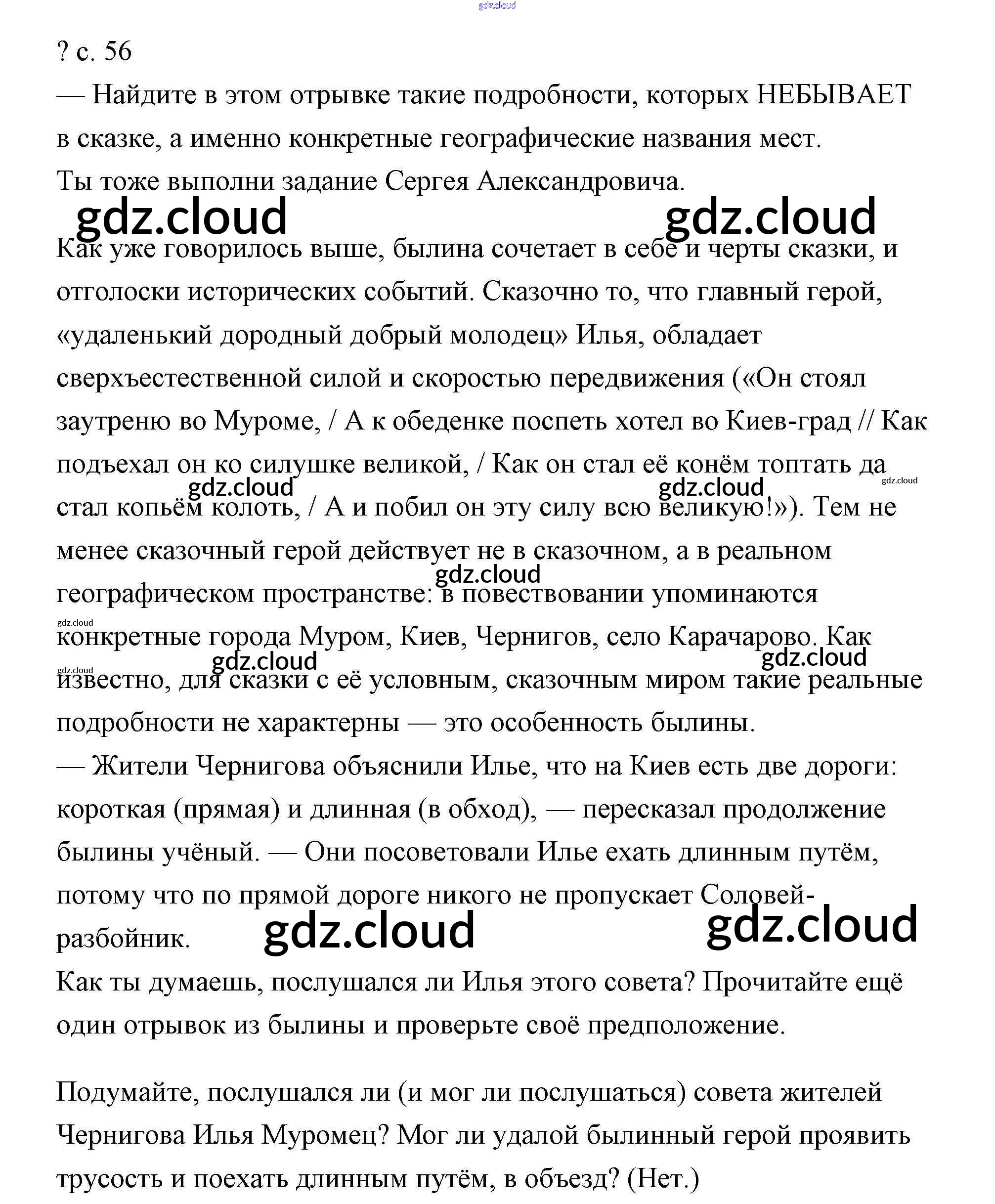 Ответ на задание стр.56 Учебник Литература за 4 (четвертый) класс Чуракова Перспективная начальная школа 2017 Часть 1, 2