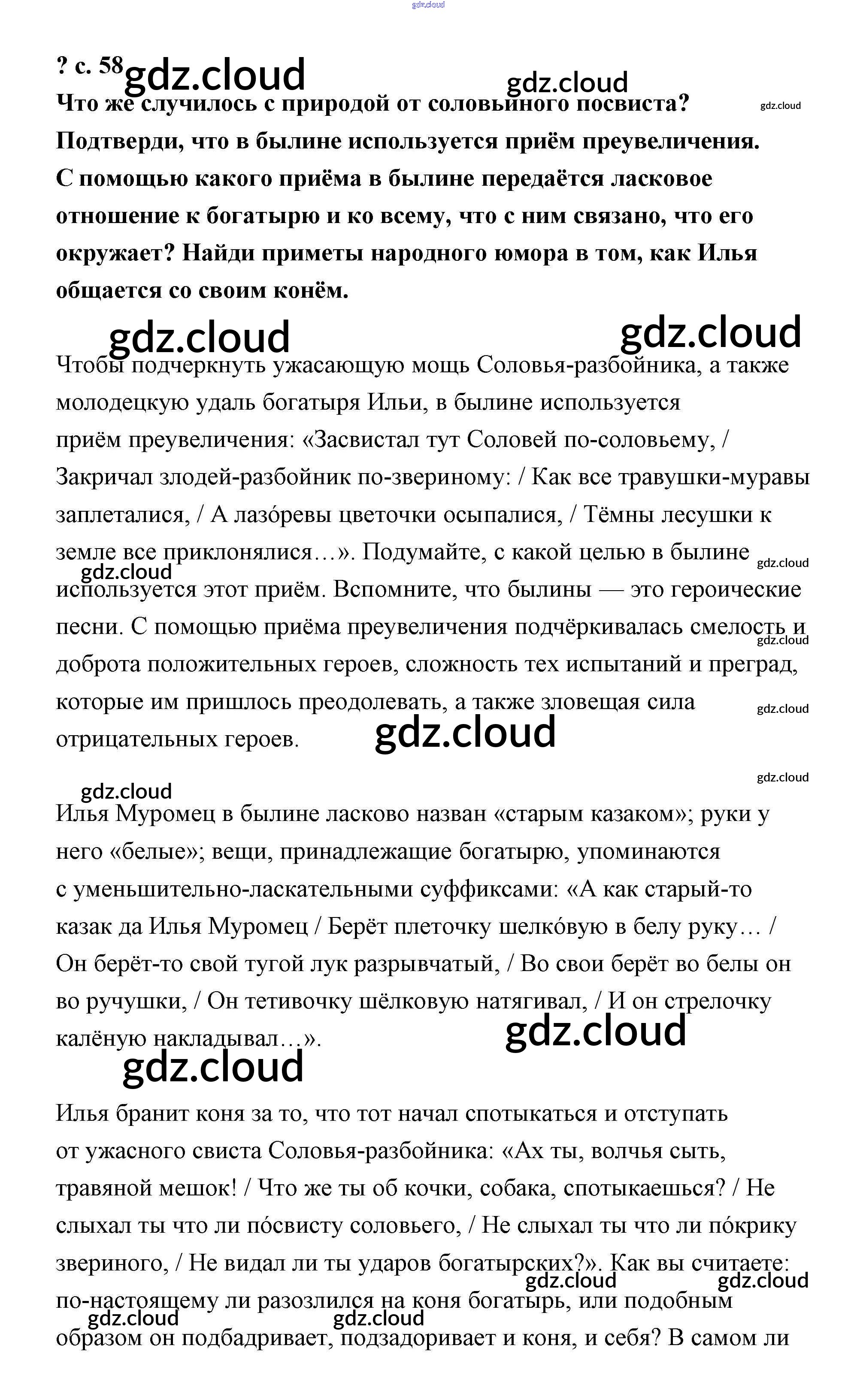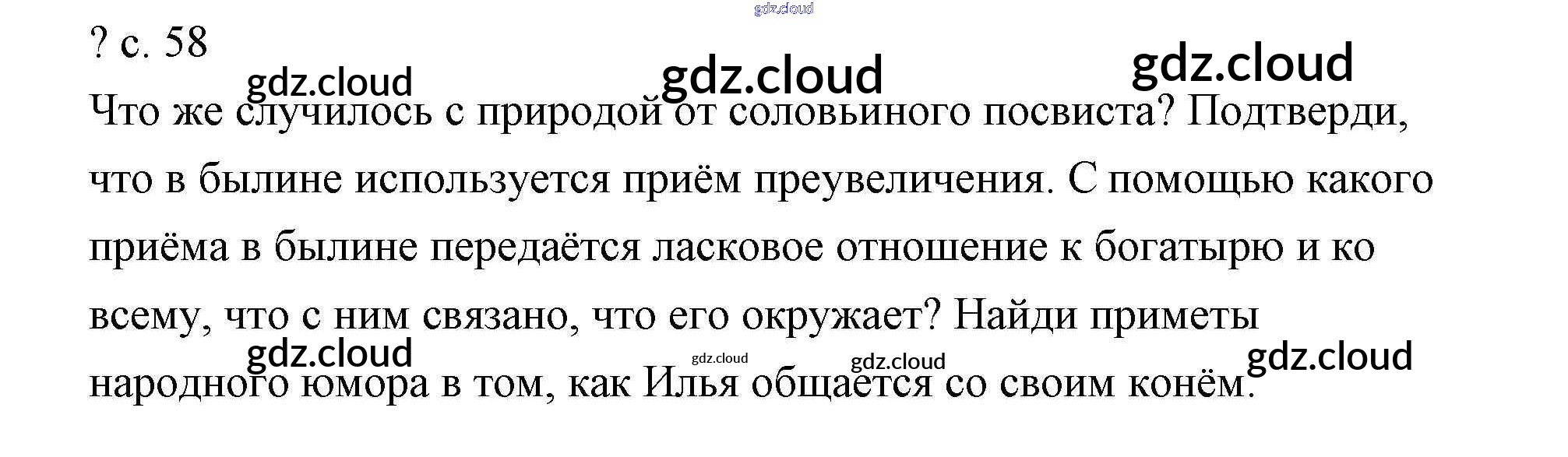 Ответ на задание стр.58 Учебник Литература за 4 (четвертый) класс Чуракова Перспективная начальная школа 2017 Часть 1, 2