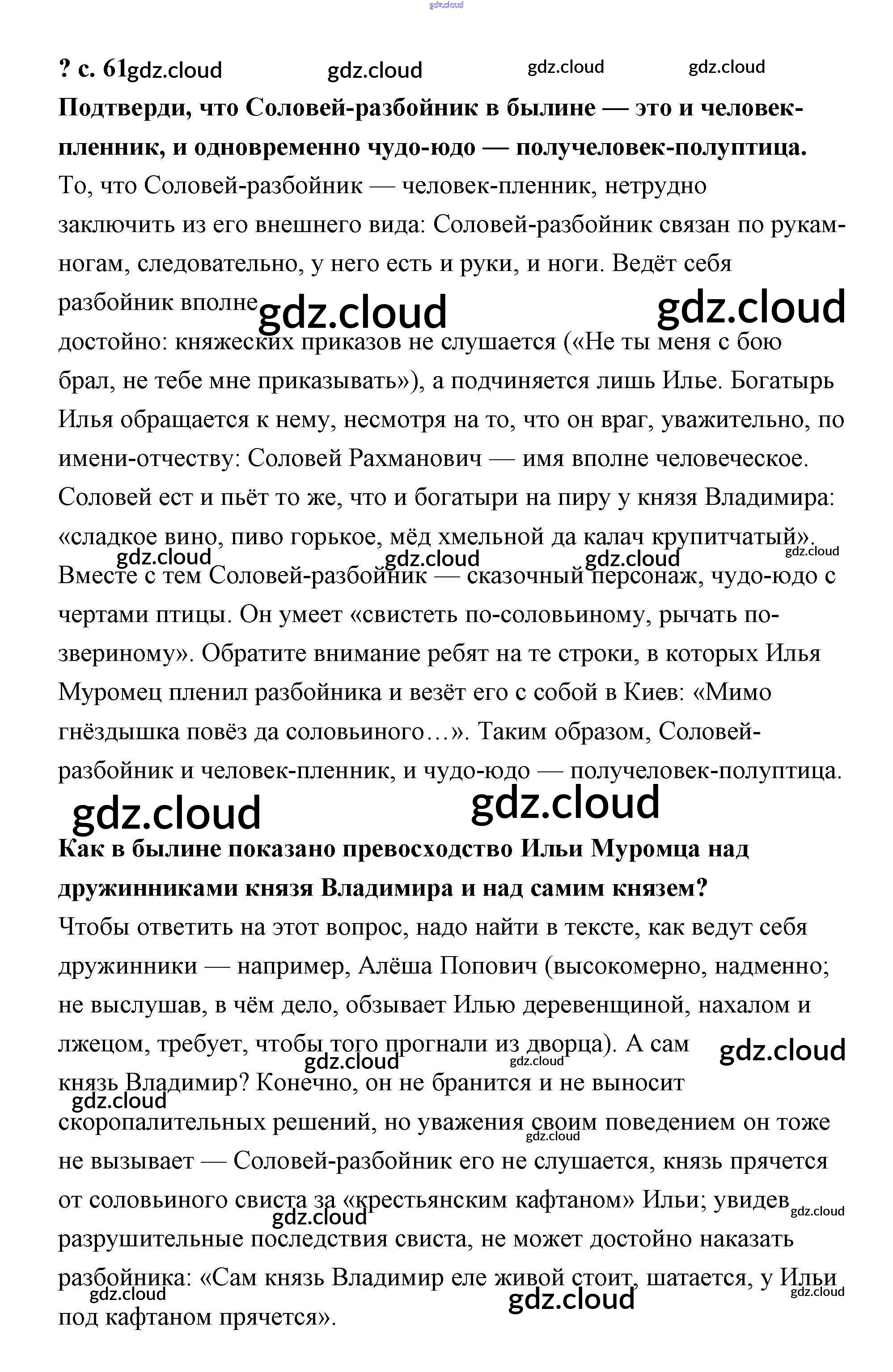 Ответ на задание стр.61 Учебник Литература за 4 (четвертый) класс Чуракова Перспективная начальная школа 2017 Часть 1, 2