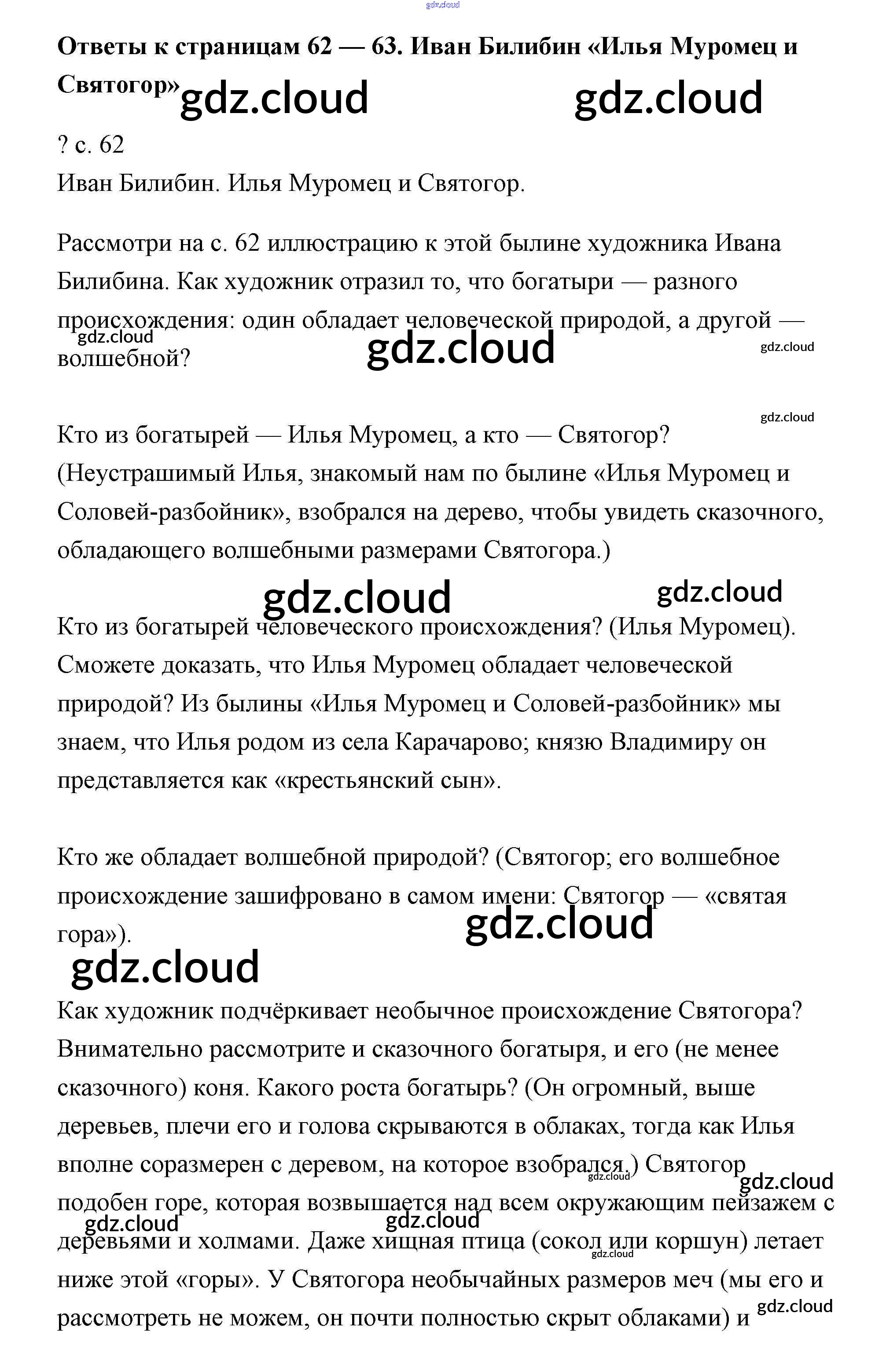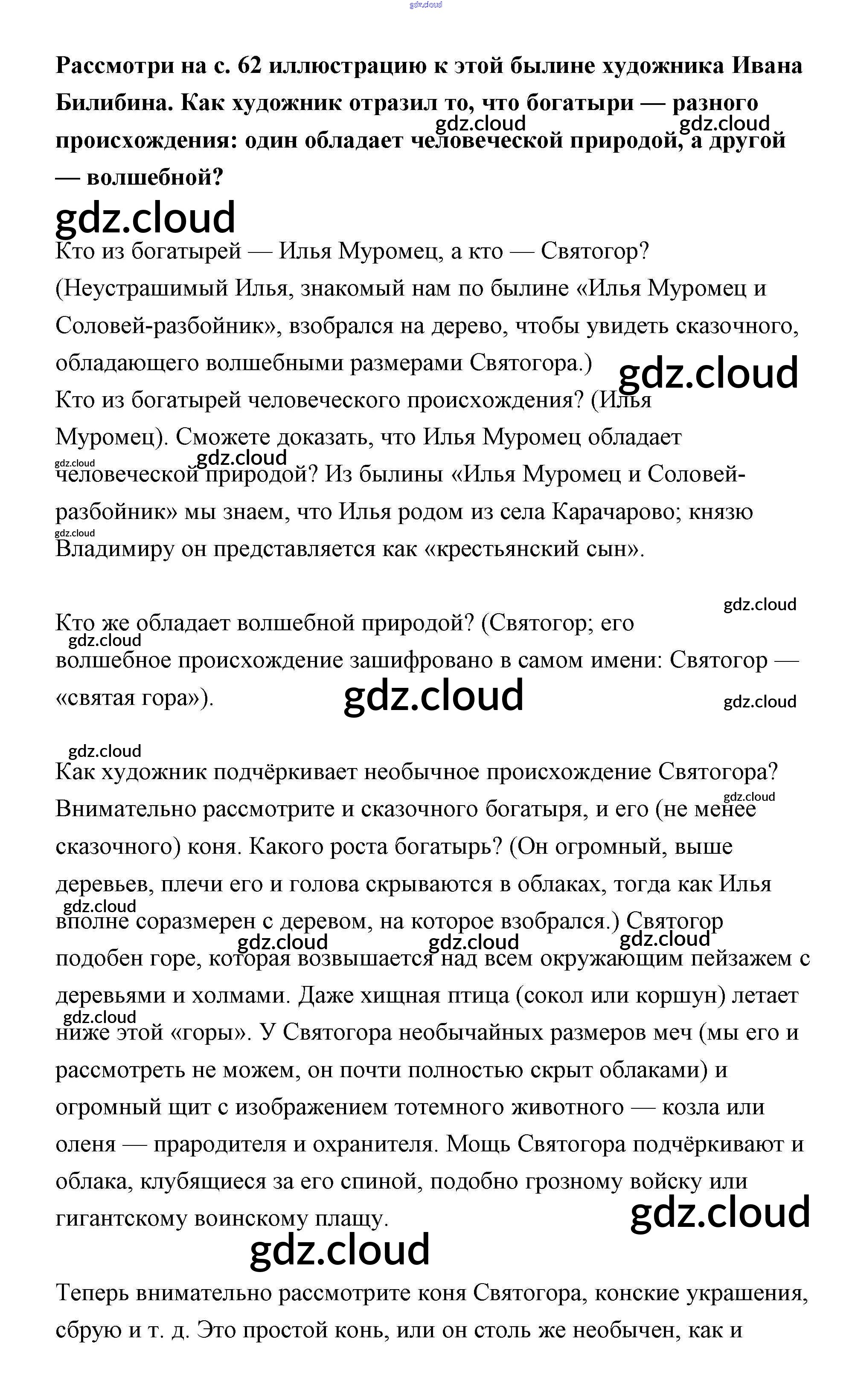 Ответ на задание стр.62 Учебник Литература за 4 (четвертый) класс Чуракова Перспективная начальная школа 2017 Часть 1, 2