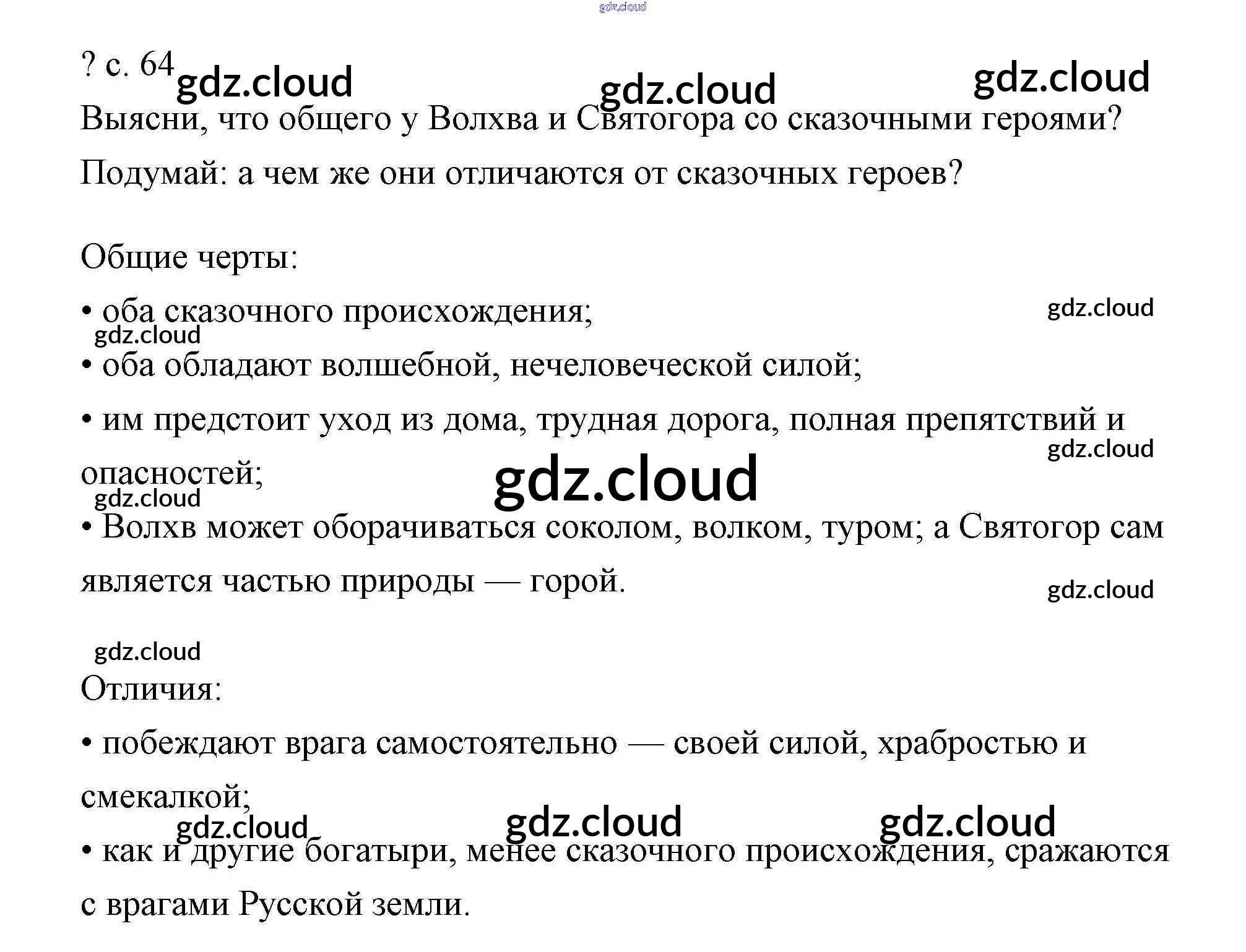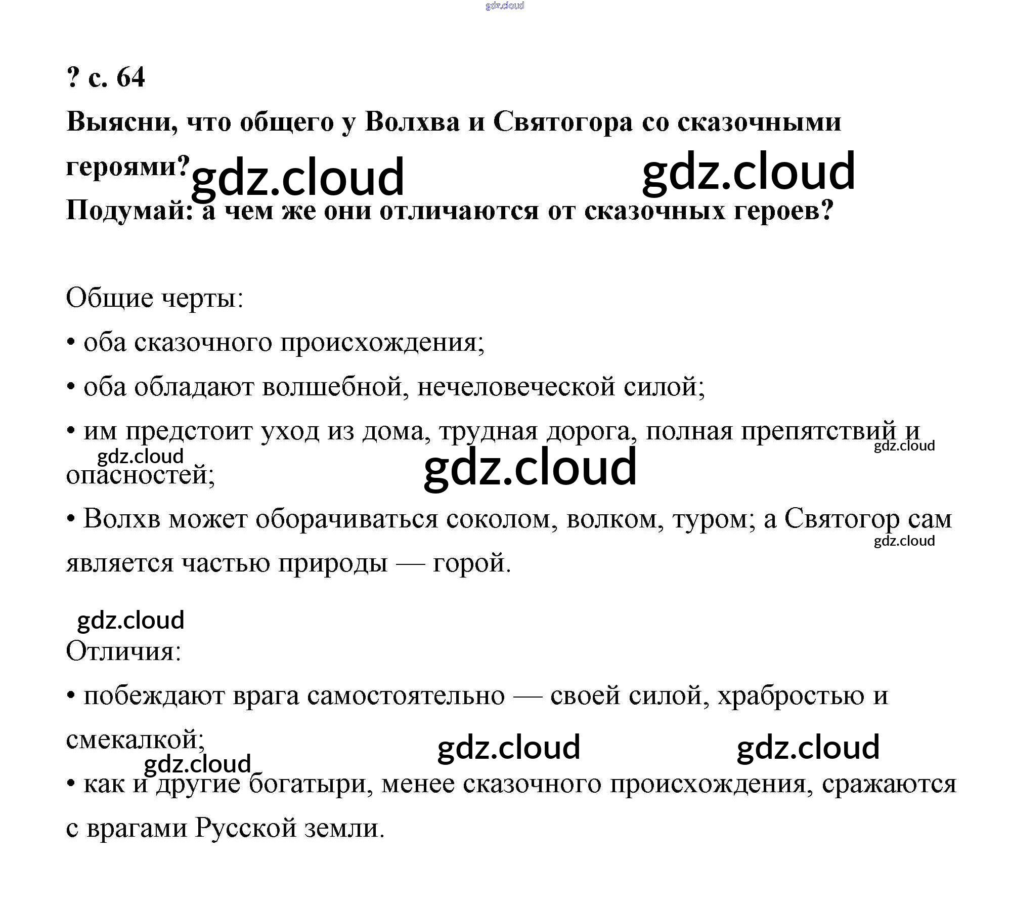 Ответ на задание стр.64 Учебник Литература за 4 (четвертый) класс Чуракова Перспективная начальная школа 2017 Часть 1, 2