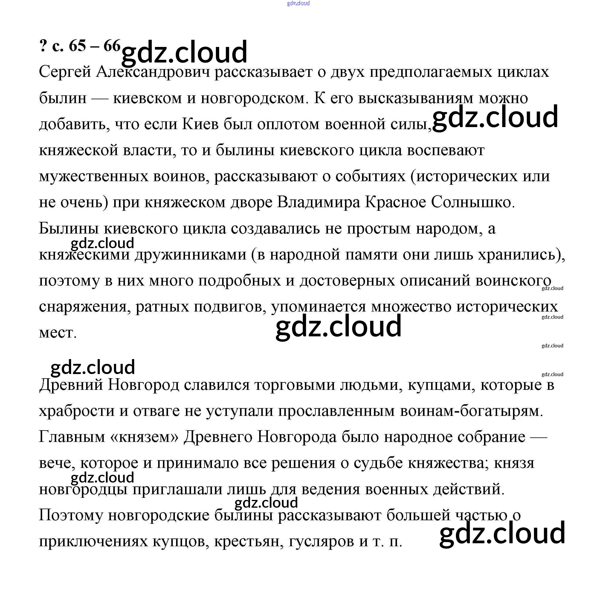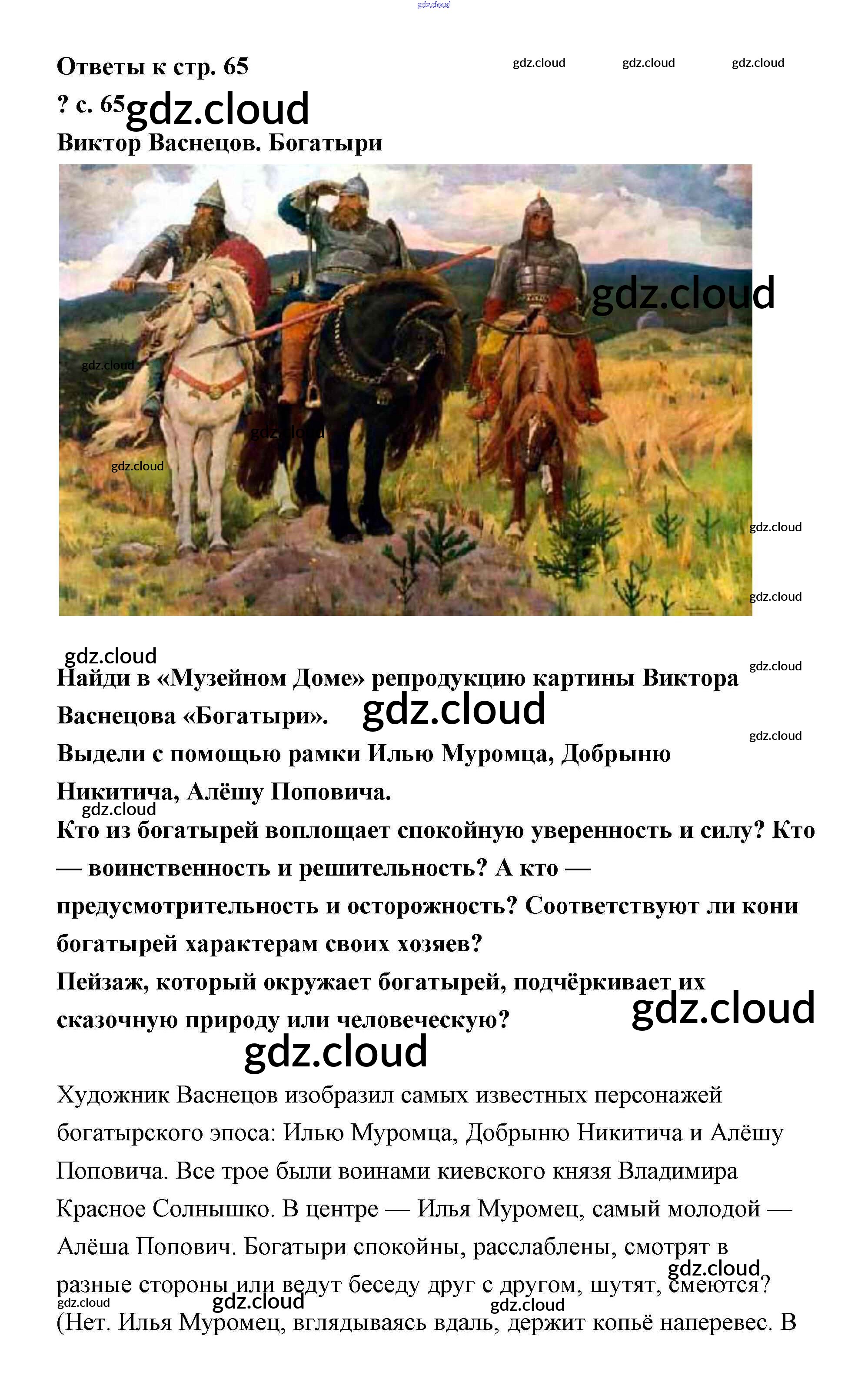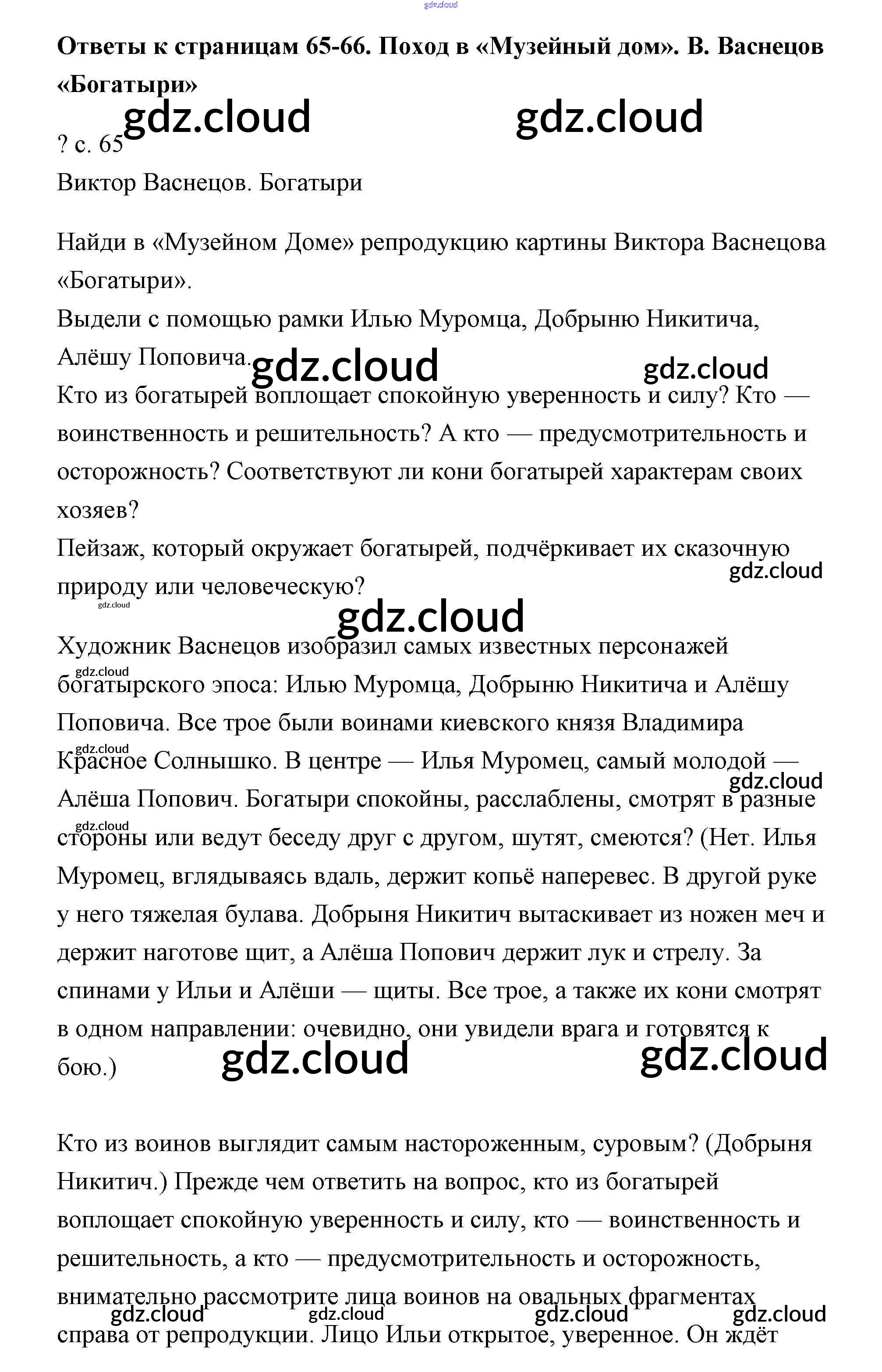Ответ на задание стр.65 Учебник Литература за 4 (четвертый) класс Чуракова Перспективная начальная школа 2017 Часть 1, 2