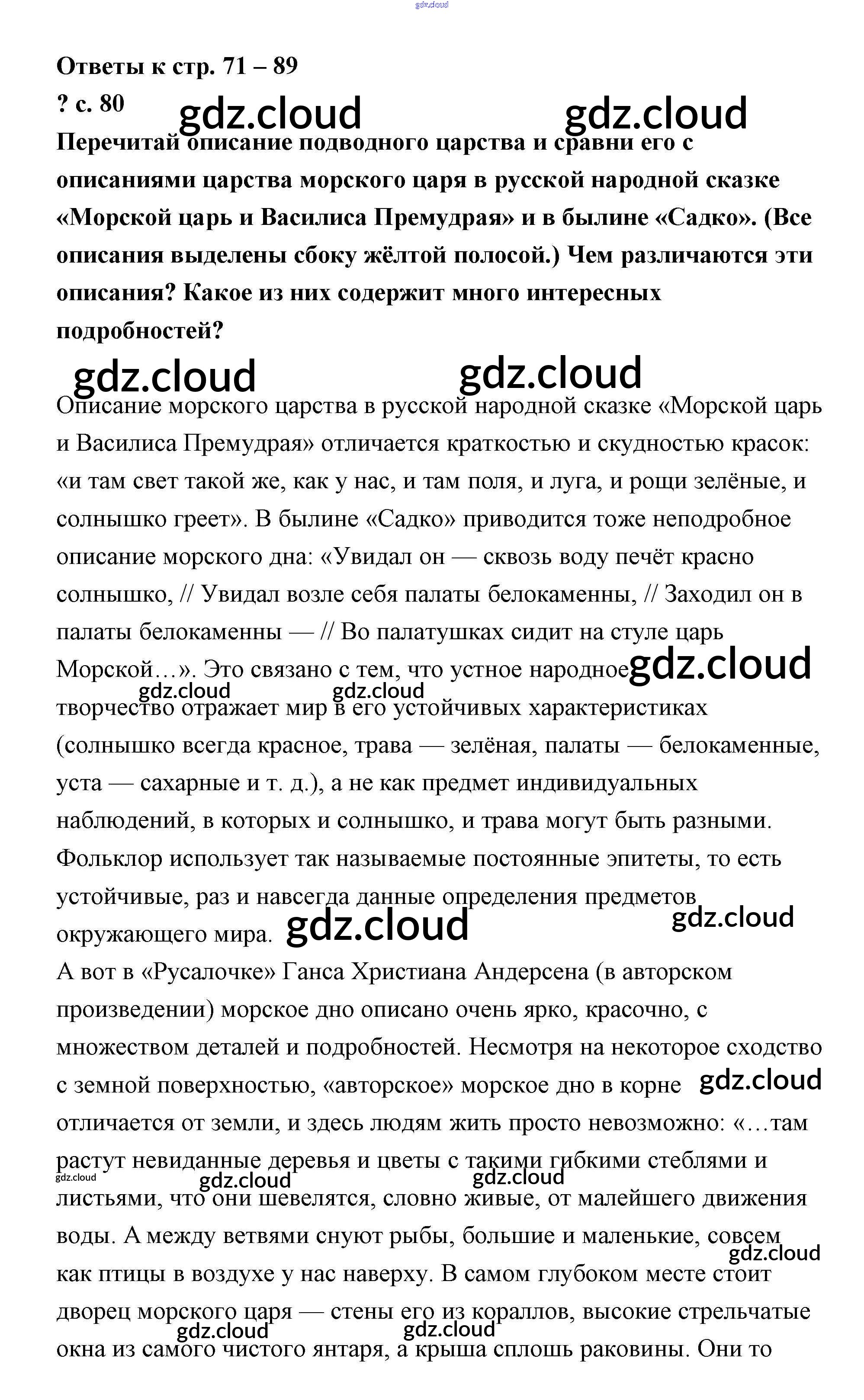 Ответ на задание стр.80 Учебник Литература за 4 (четвертый) класс Чуракова Перспективная начальная школа 2017 Часть 1, 2