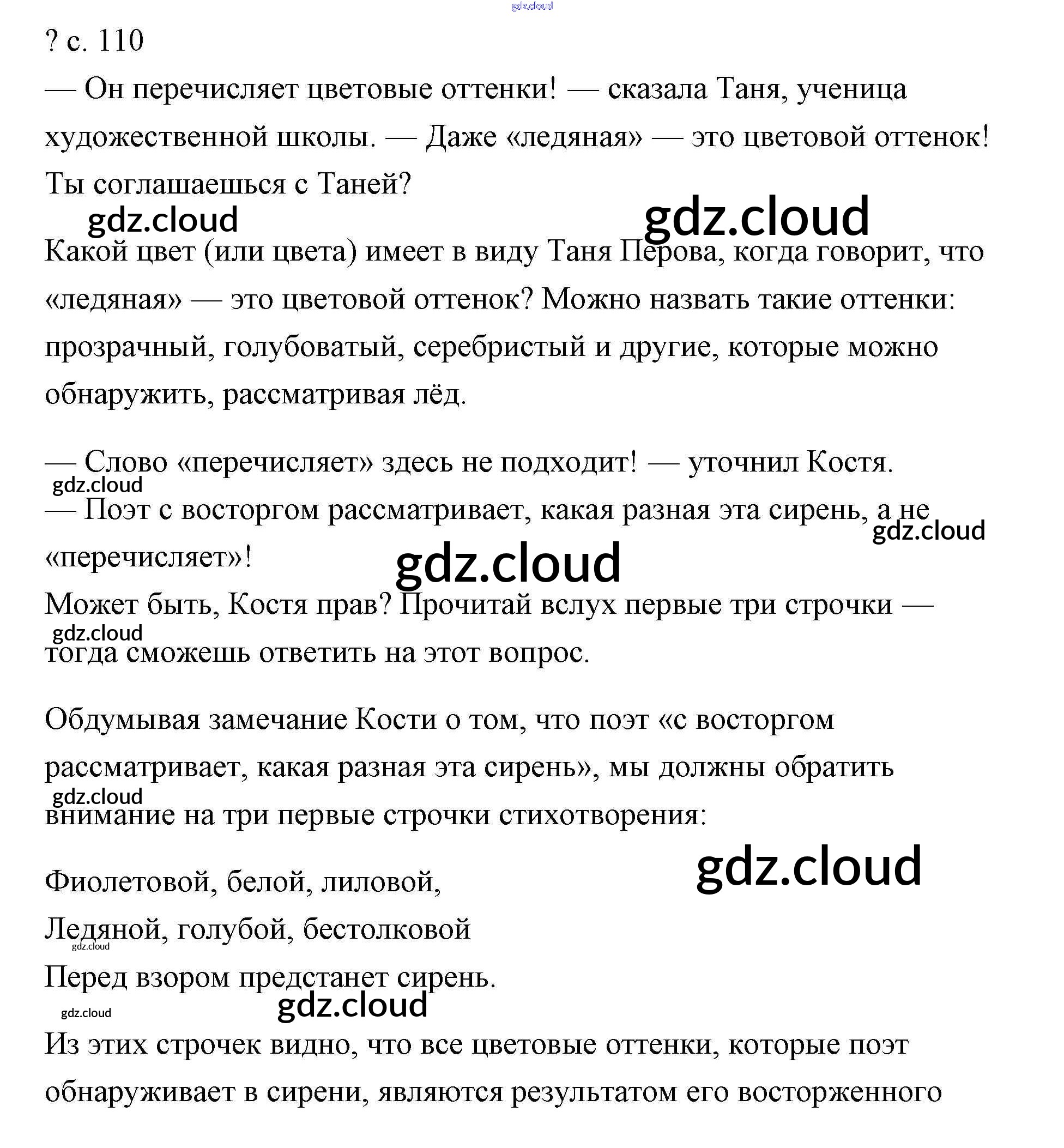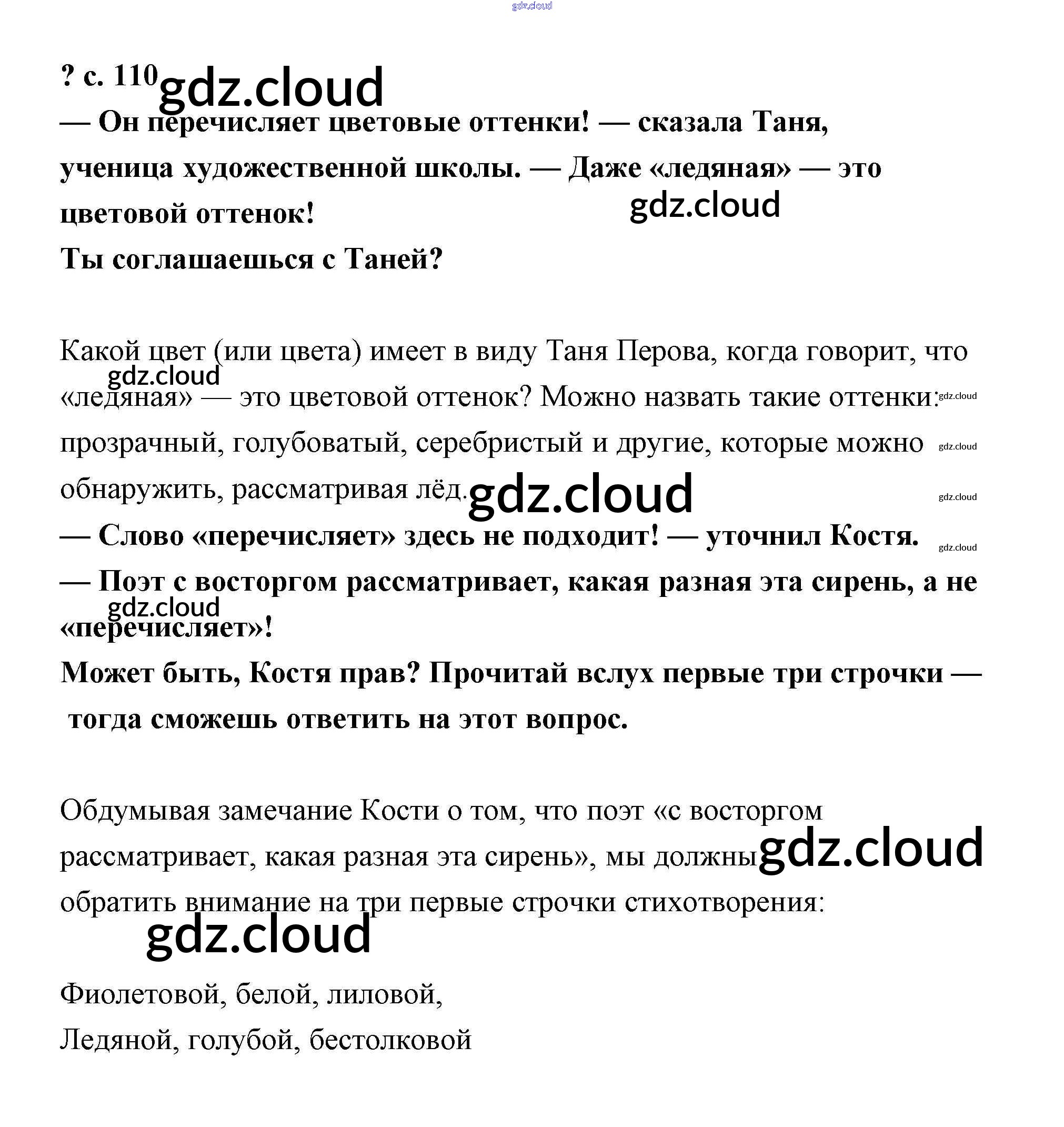 Ответ на задание стр.110 Учебник Литература за 4 (четвертый) класс Чуракова Перспективная начальная школа 2017 Часть 1, 2