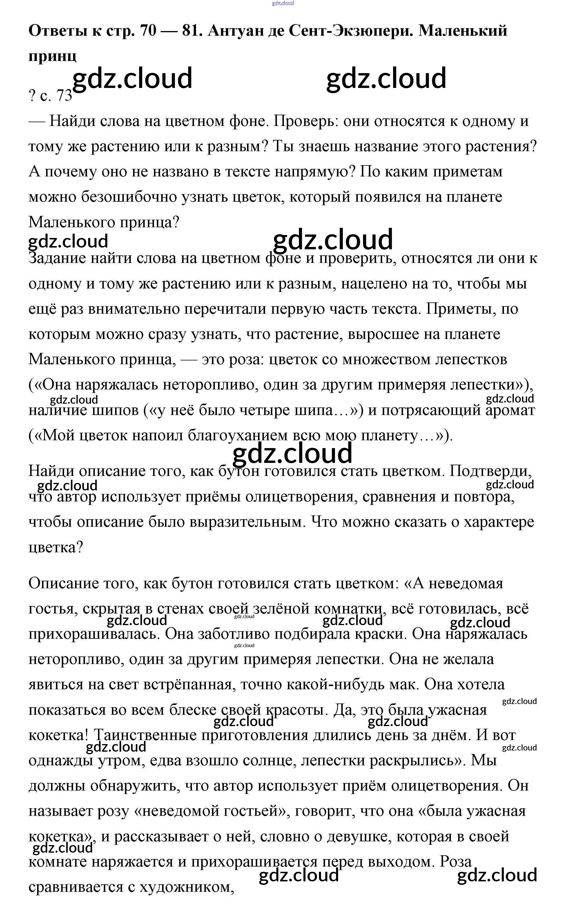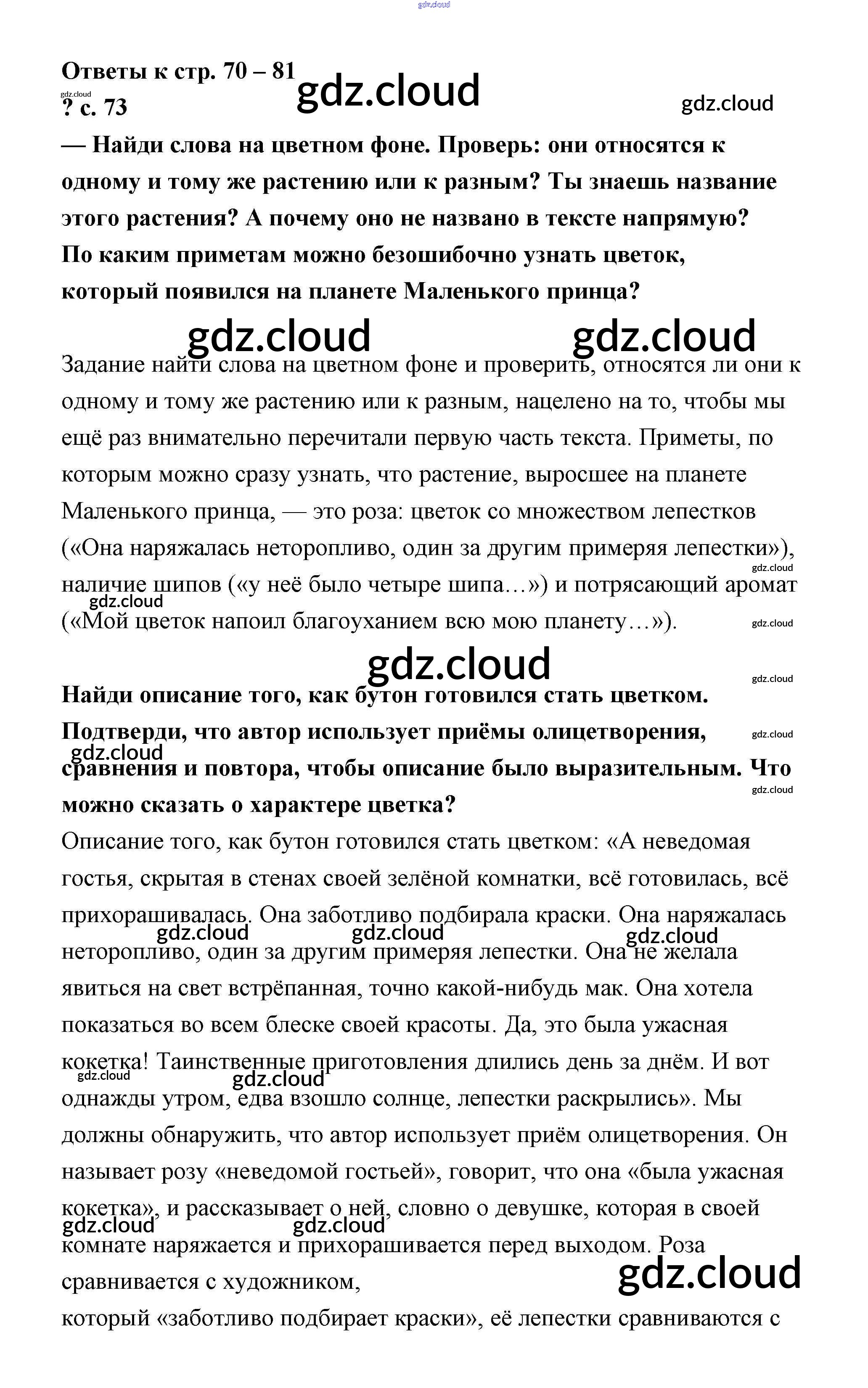 Ответ на задание стр.73 Учебник Литература за 4 (четвертый) класс Чуракова Перспективная начальная школа 2017 Часть 1, 2