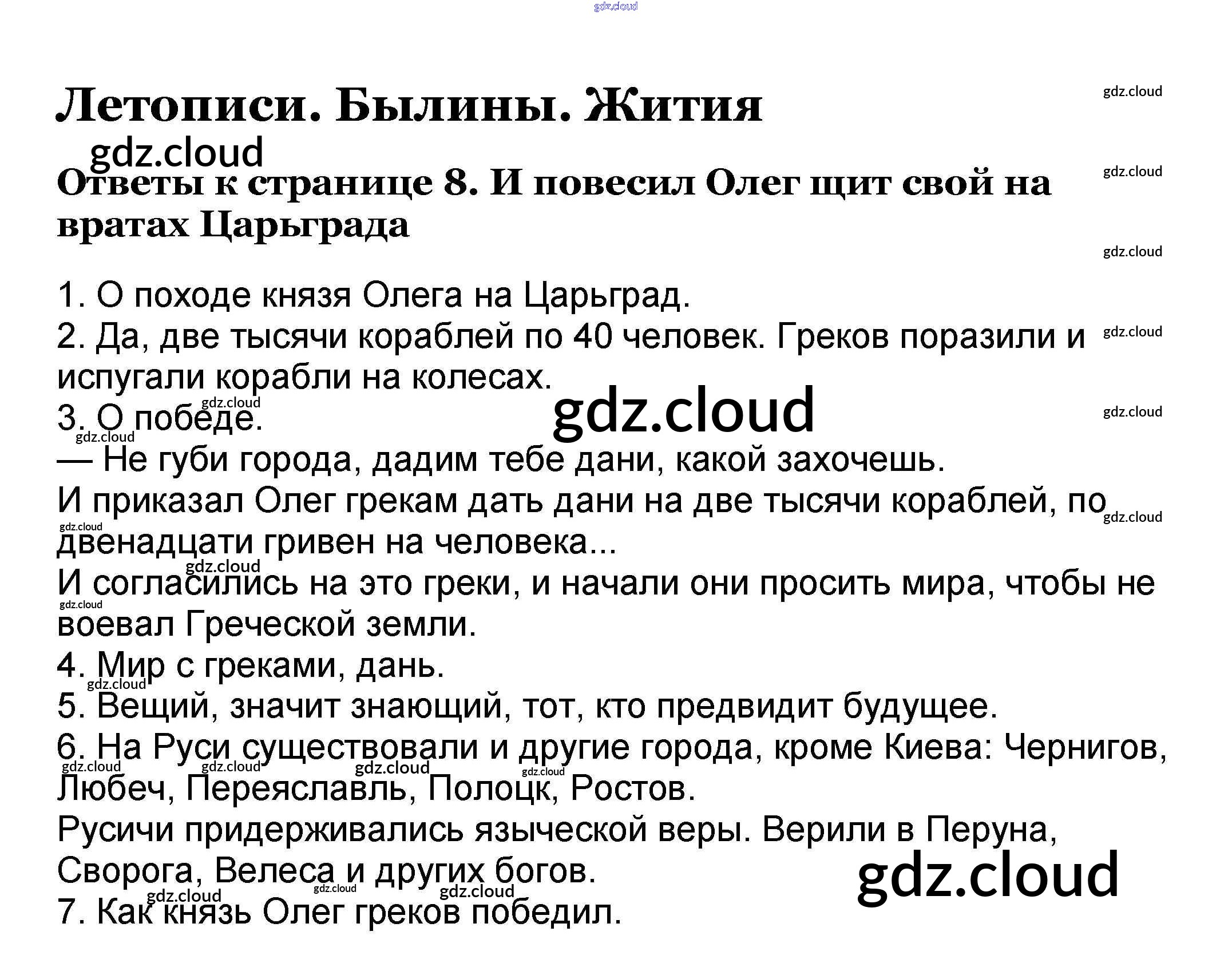 Ответ на задание 8 Учебник Литература за 4 (четвертый) класс Климанова, Горецкий, Голованова Школа России 2018 Часть 1, 2