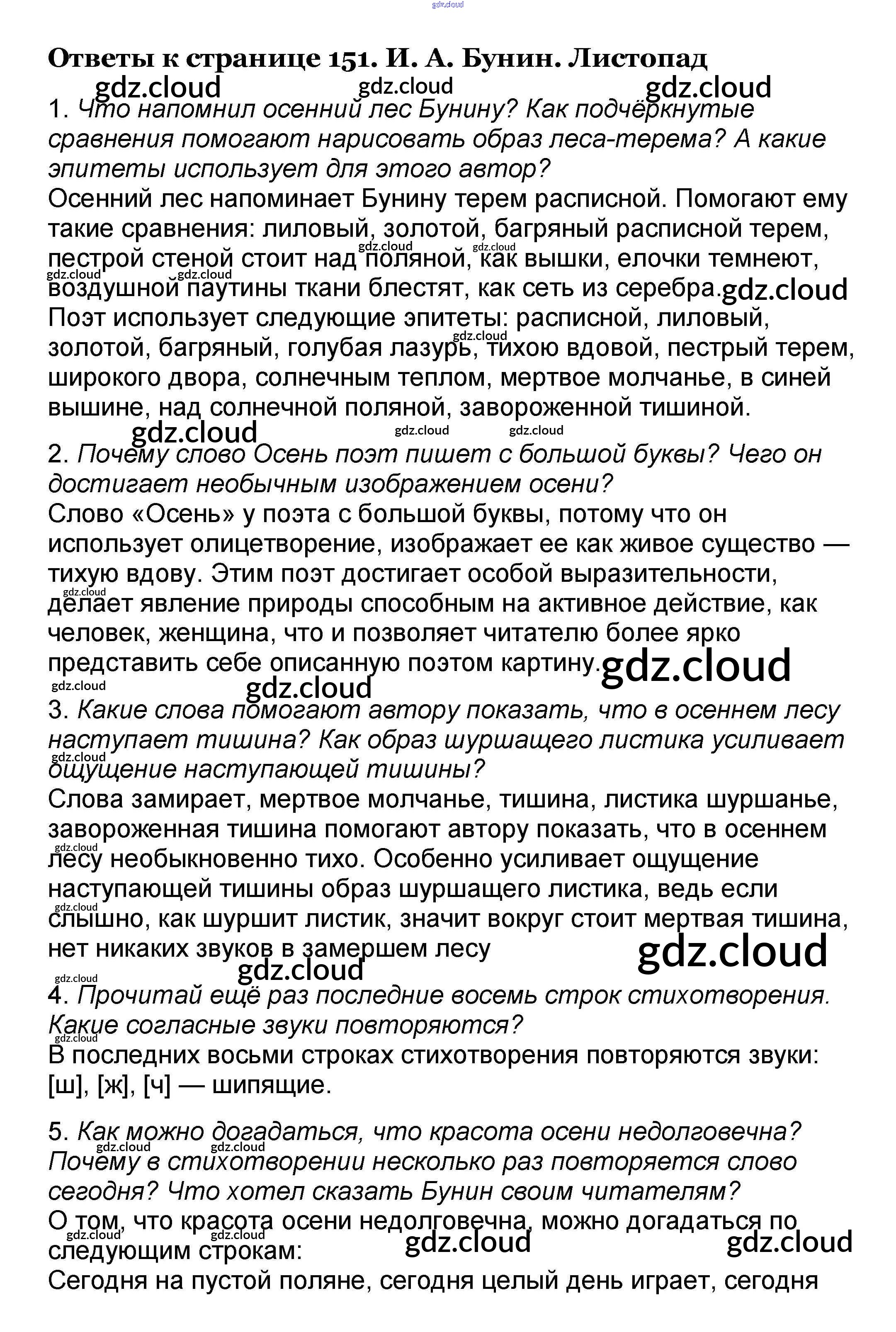 Ответ на задание 151 Учебник Литература за 4 (четвертый) класс Климанова, Горецкий, Голованова Школа России 2018 Часть 1, 2