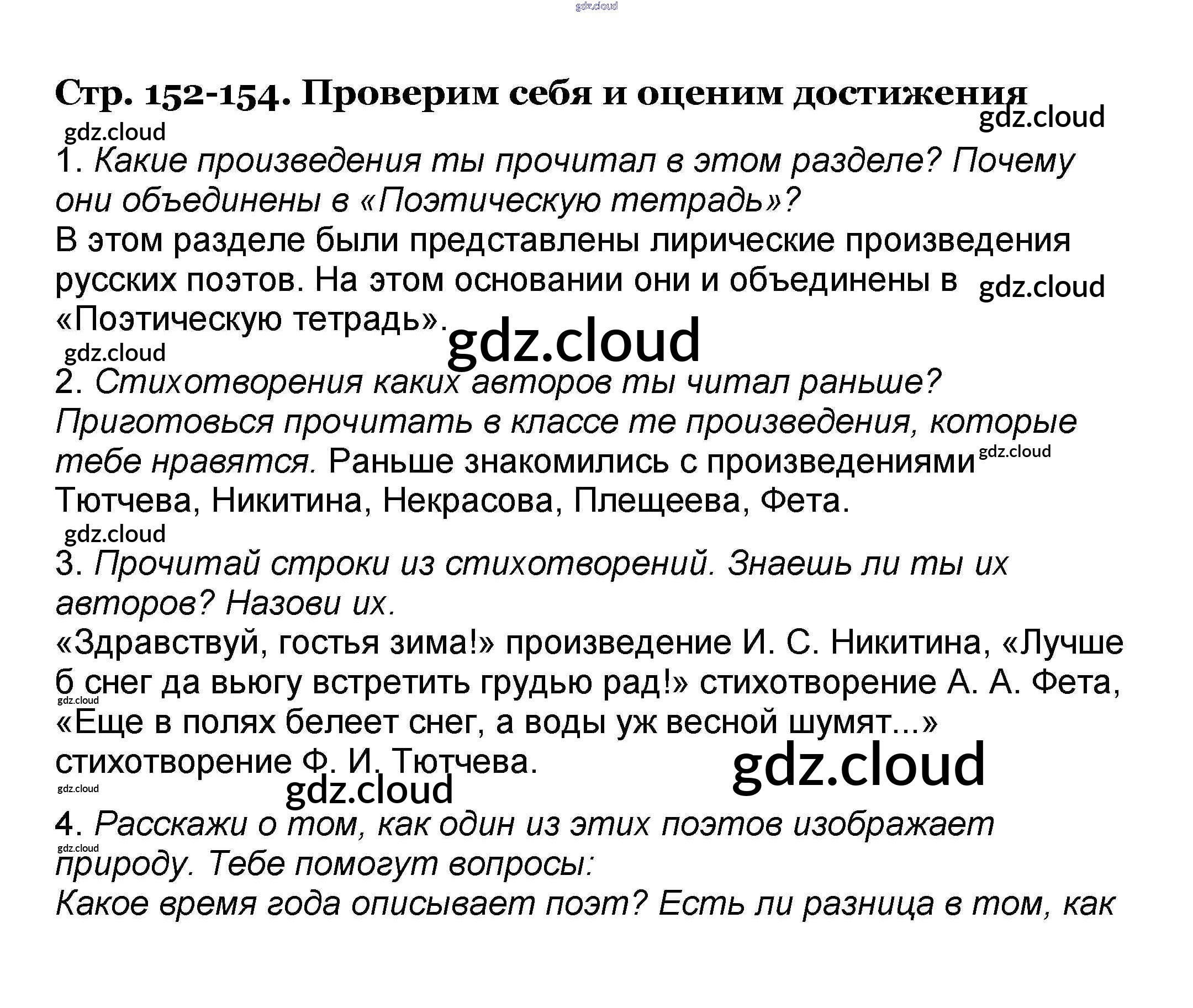 Ответ на задание 152-154 Учебник Литература за 4 (четвертый) класс Климанова, Горецкий, Голованова Школа России 2018 Часть 1, 2