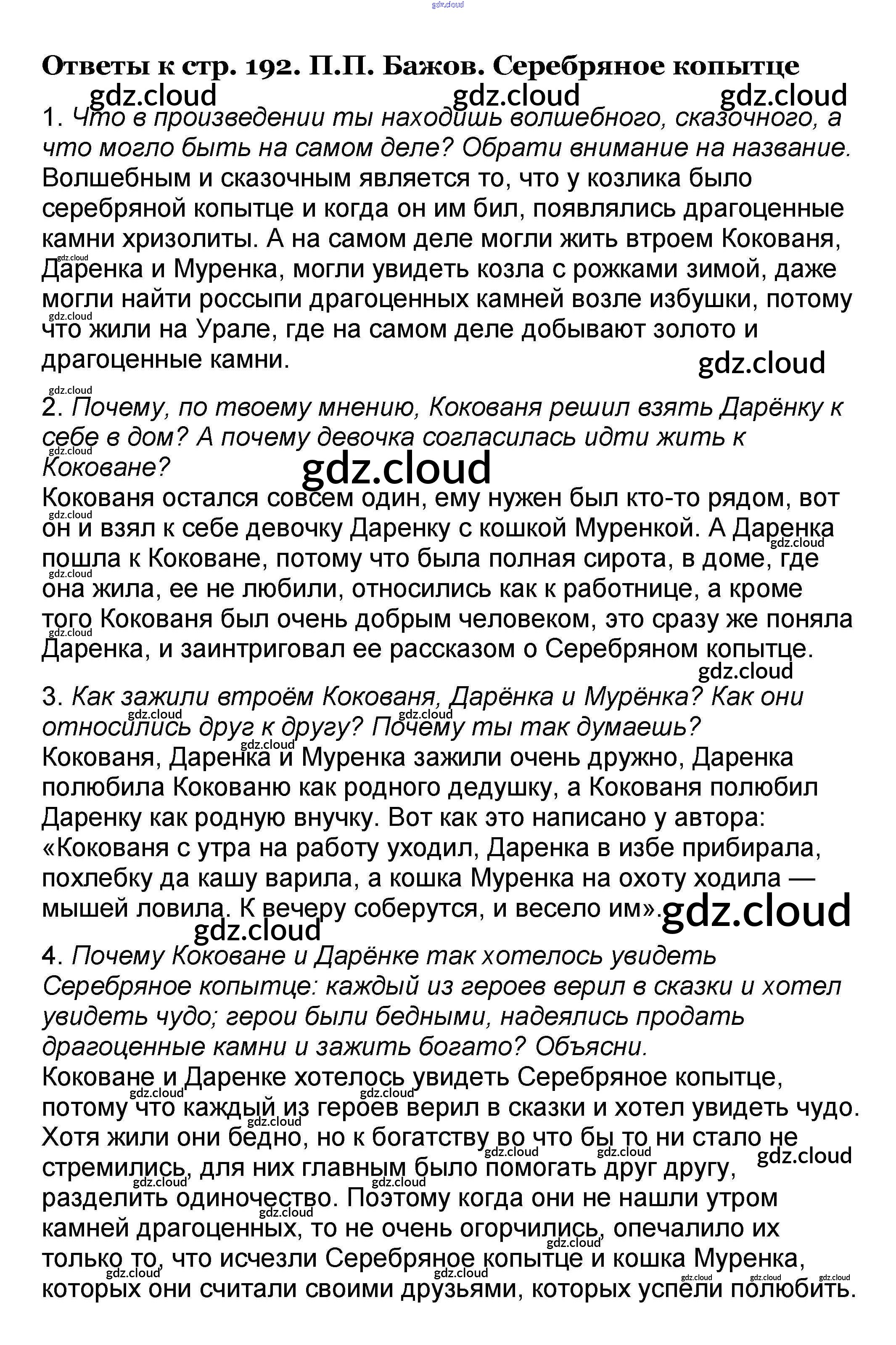 Ответ на задание 192 Учебник Литература за 4 (четвертый) класс Климанова, Горецкий, Голованова Школа России 2018 Часть 1, 2