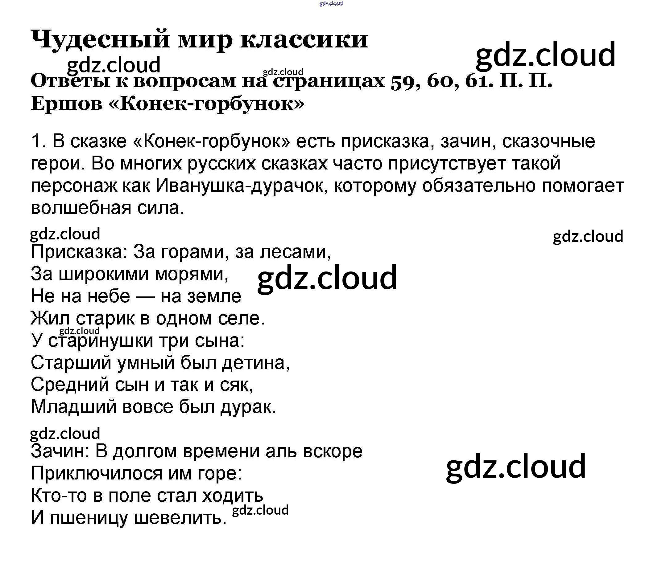 Ответ на задание 59-61 Учебник Литература за 4 (четвертый) класс Климанова, Горецкий, Голованова Школа России 2018 Часть 1, 2