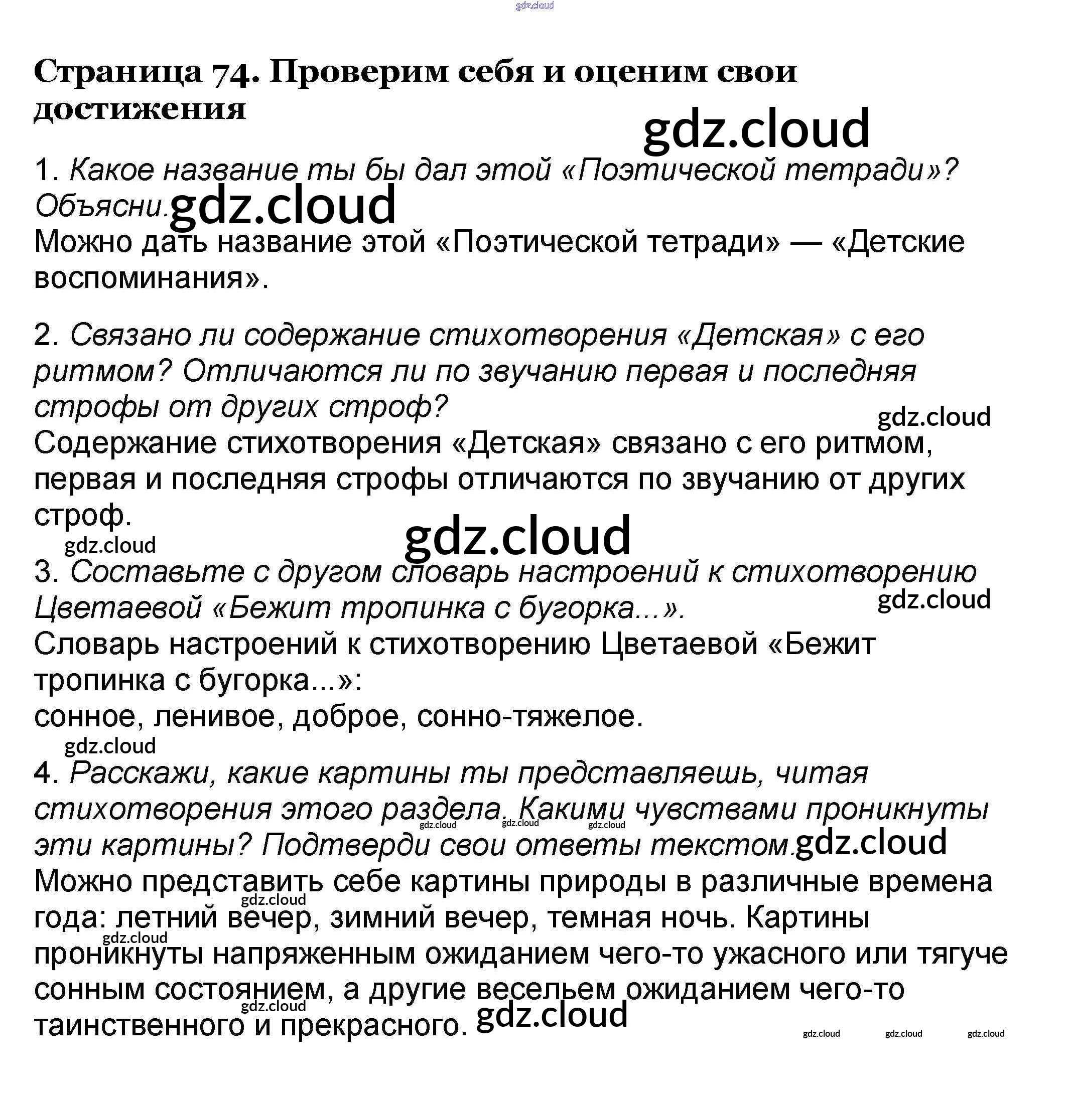Ответ на задание 74 Учебник Литература за 4 (четвертый) класс Климанова, Горецкий, Голованова Школа России 2018 Часть 1, 2