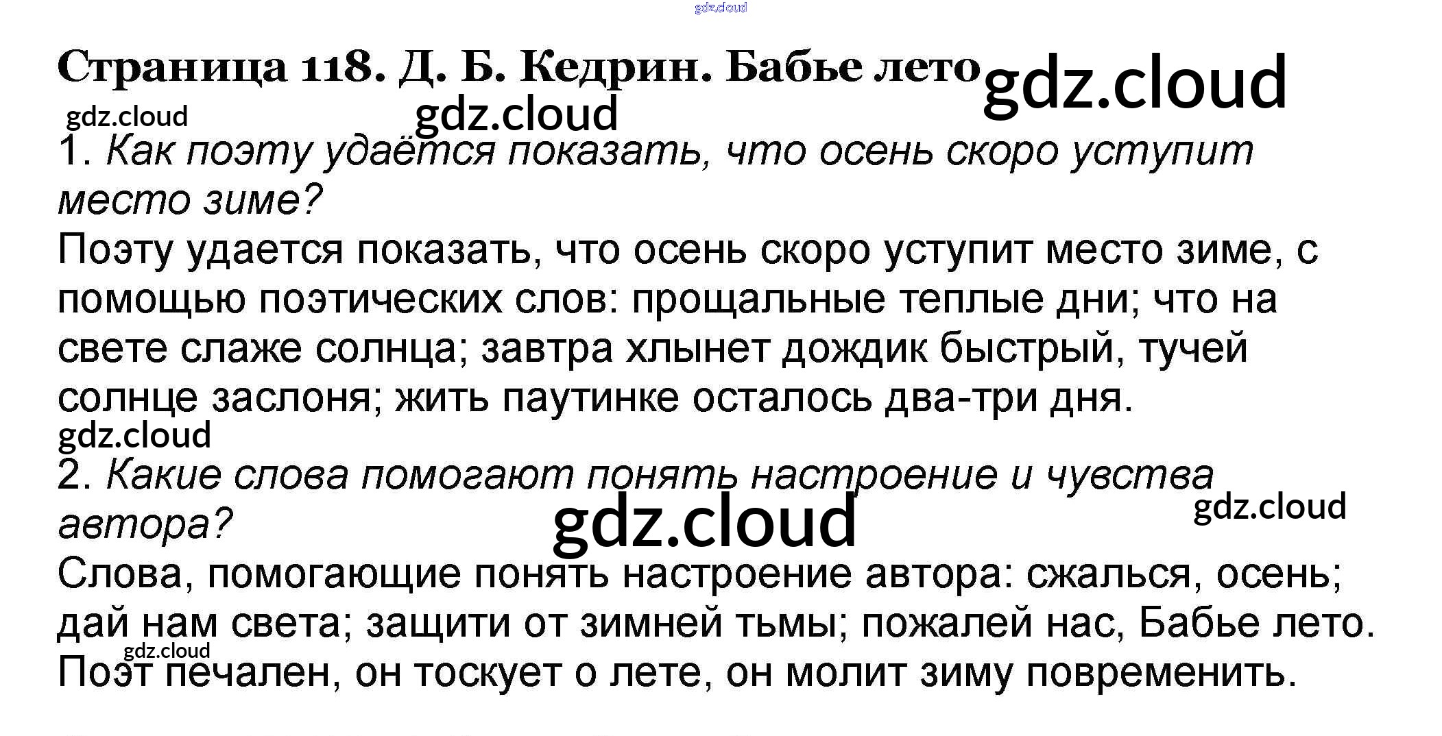 Ответ на задание 118 Учебник Литература за 4 (четвертый) класс Климанова, Горецкий, Голованова Школа России 2018 Часть 1, 2