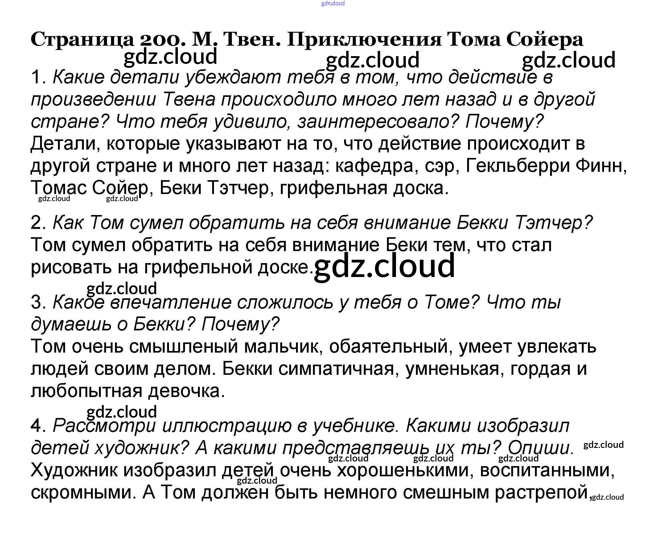 Ответ на задание 200 Учебник Литература за 4 (четвертый) класс Климанова, Горецкий, Голованова Школа России 2018 Часть 1, 2