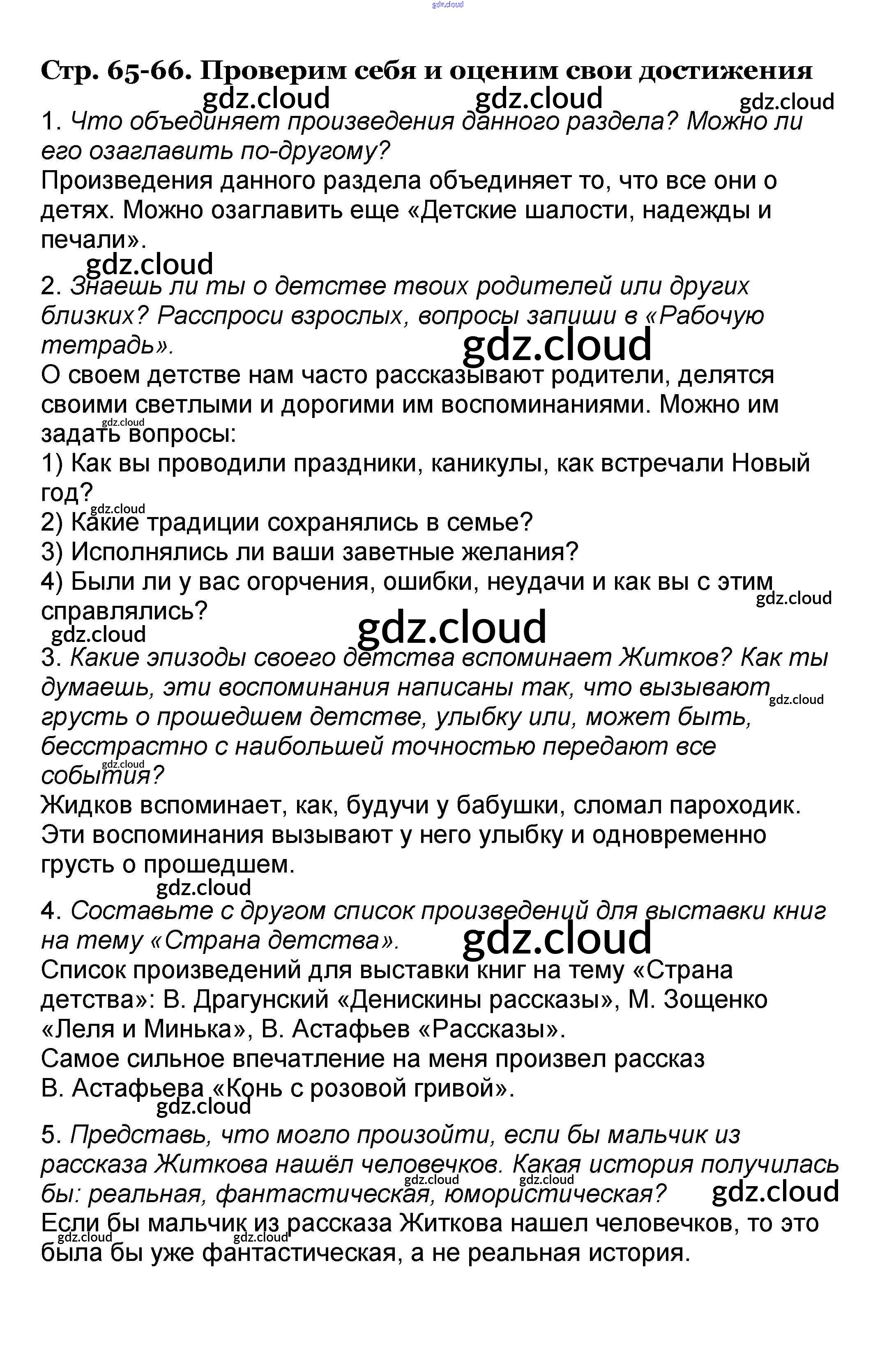 Ответ на задание 65-66 Учебник Литература за 4 (четвертый) класс Климанова, Горецкий, Голованова Школа России 2018 Часть 1, 2