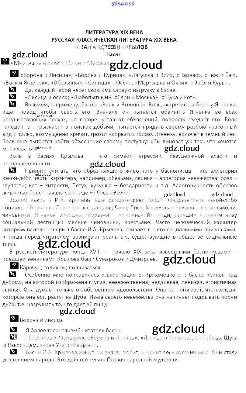 Ответ на задание Иван Андреевич Крылов Рабочая тетрадь Литература за 5 (пятый) класс Курдюмова Вертикаль 2017 Часть 1, 2