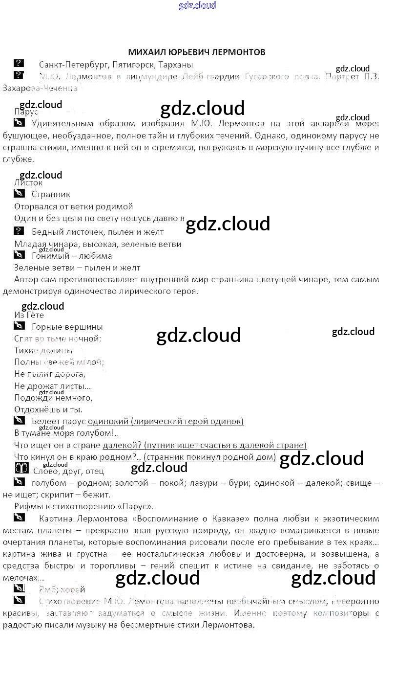 Ответ на задание Михаил Юрьевич Лермонтов Рабочая тетрадь Литература за 5 (пятый) класс Курдюмова Вертикаль 2017 Часть 1, 2