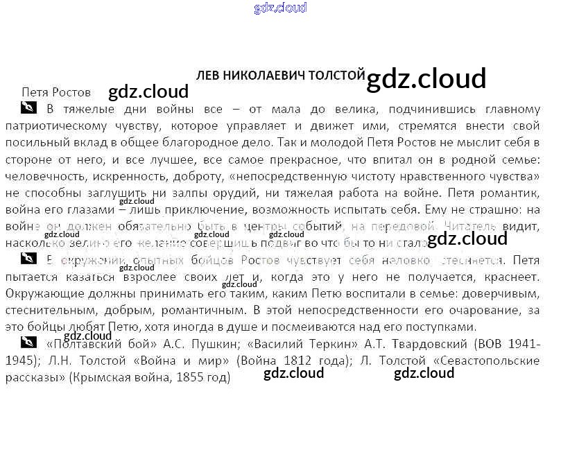 Ответ на задание Лев Николаевич Толстой. Петя Ростов Рабочая тетрадь Литература за 5 (пятый) класс Курдюмова Вертикаль 2017 Часть 1, 2