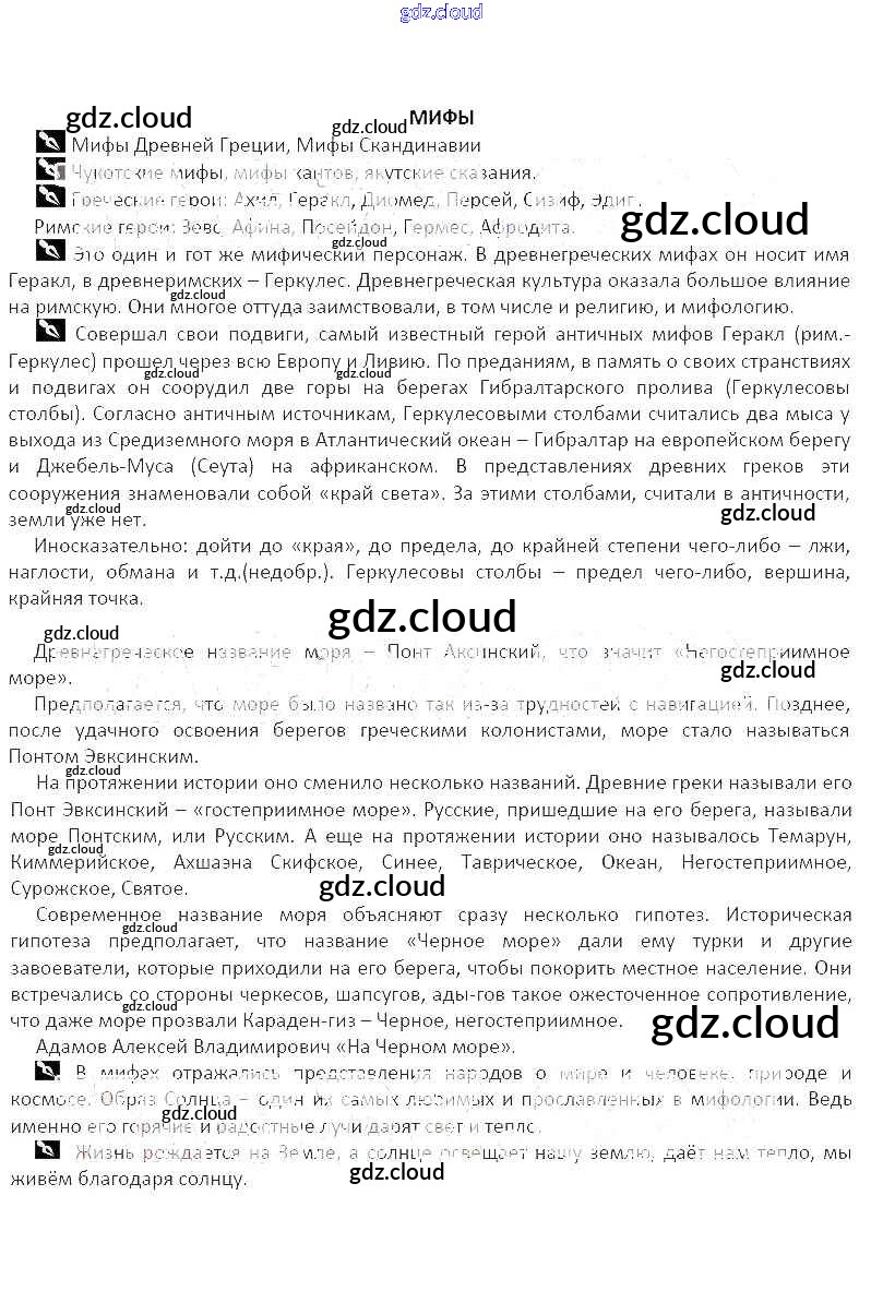 Ответ на задание Мифы Рабочая тетрадь Литература за 5 (пятый) класс Курдюмова Вертикаль 2017 Часть 1, 2